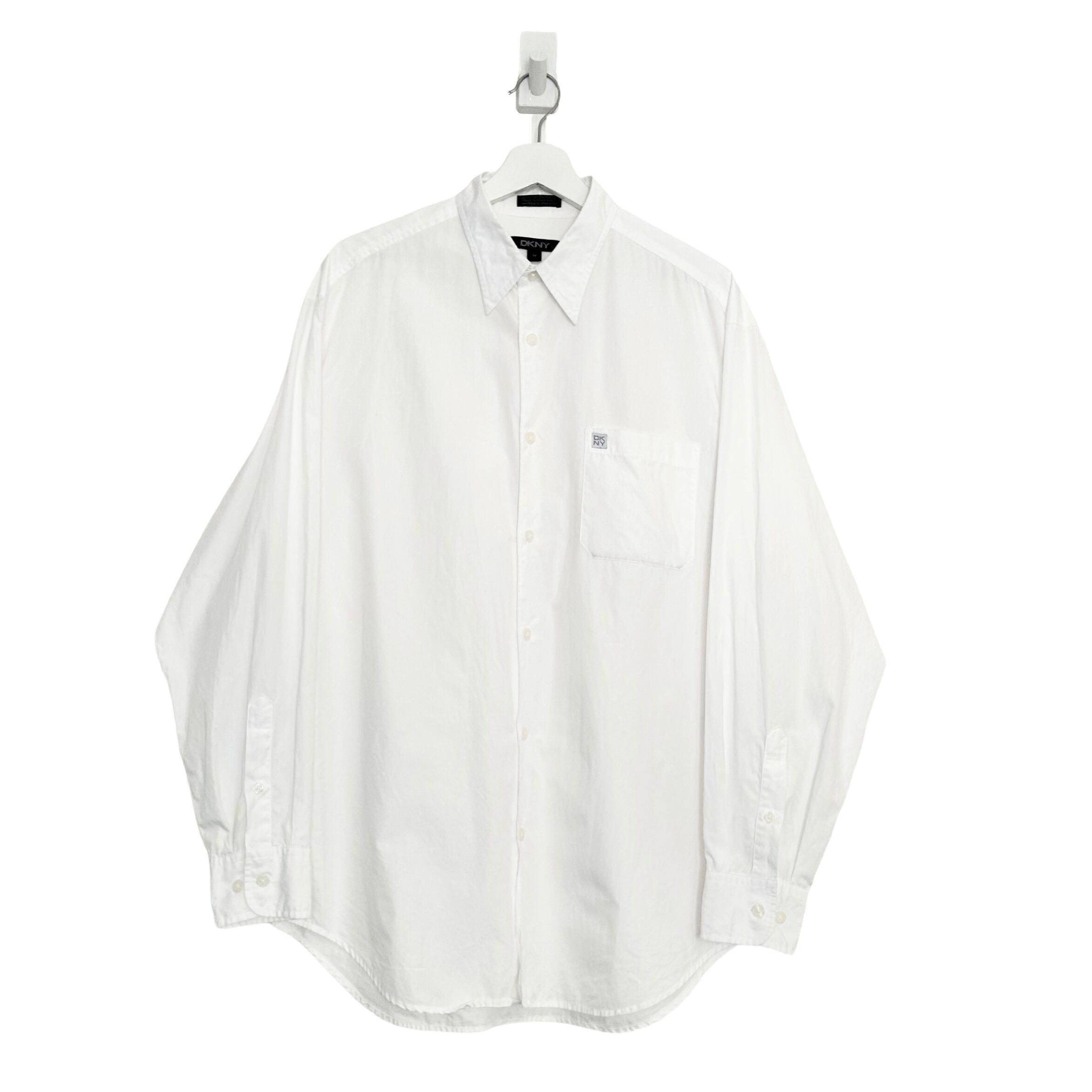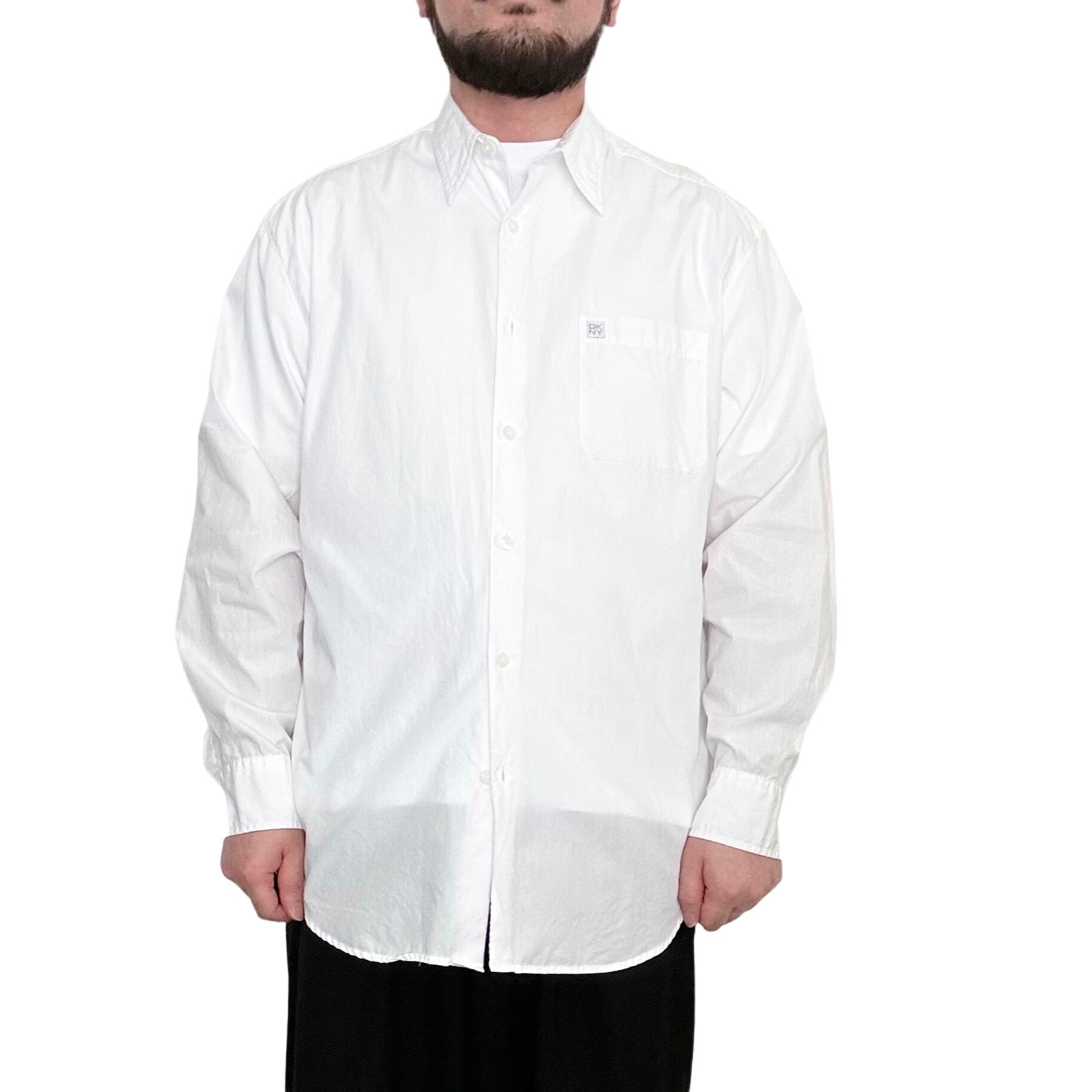 "DKNY"(mens) cotton design l/s white shirt