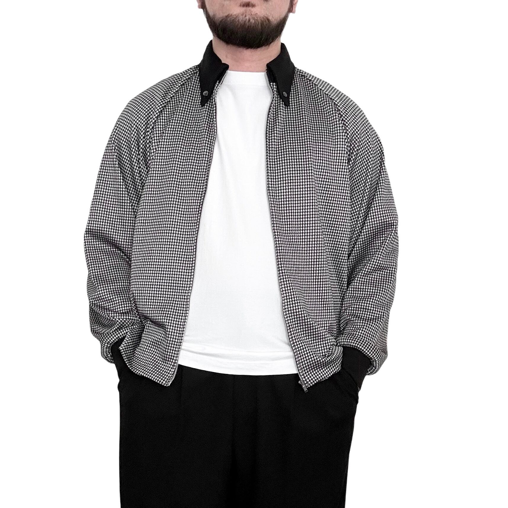 "MEN'S BIGI"(mens) hound tooth pattern zip up l/s shirt