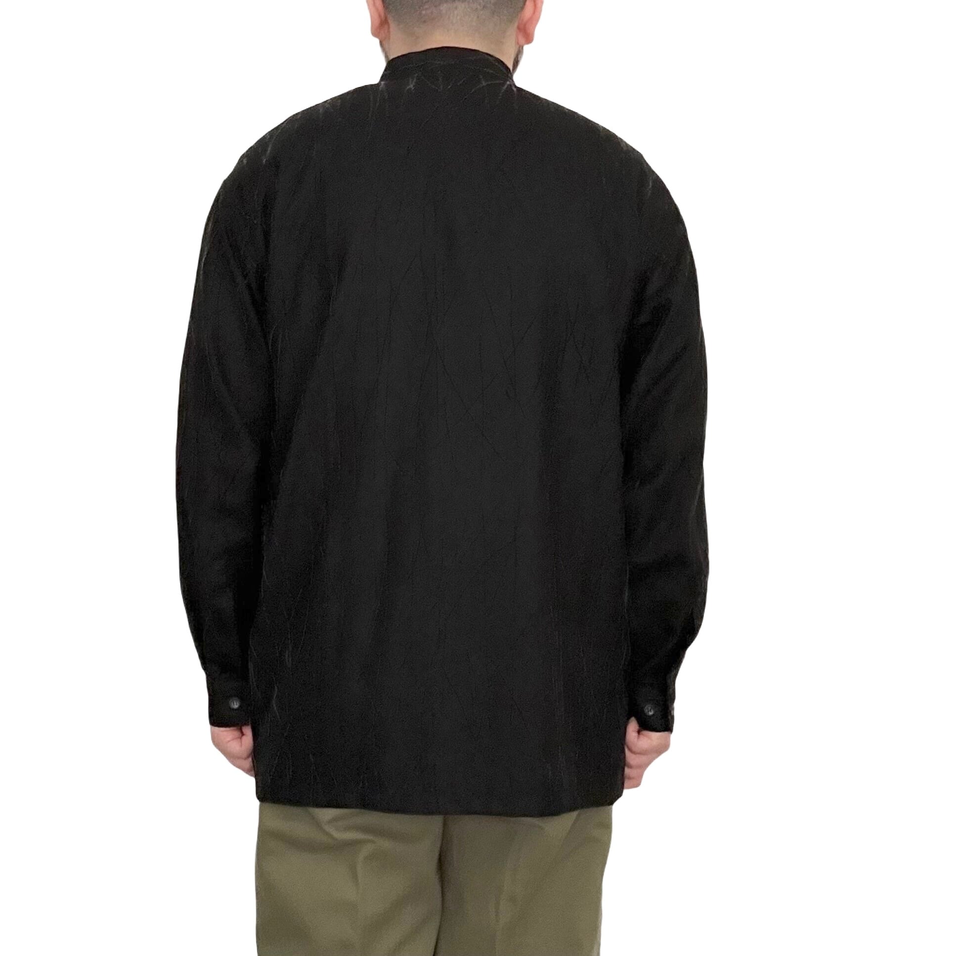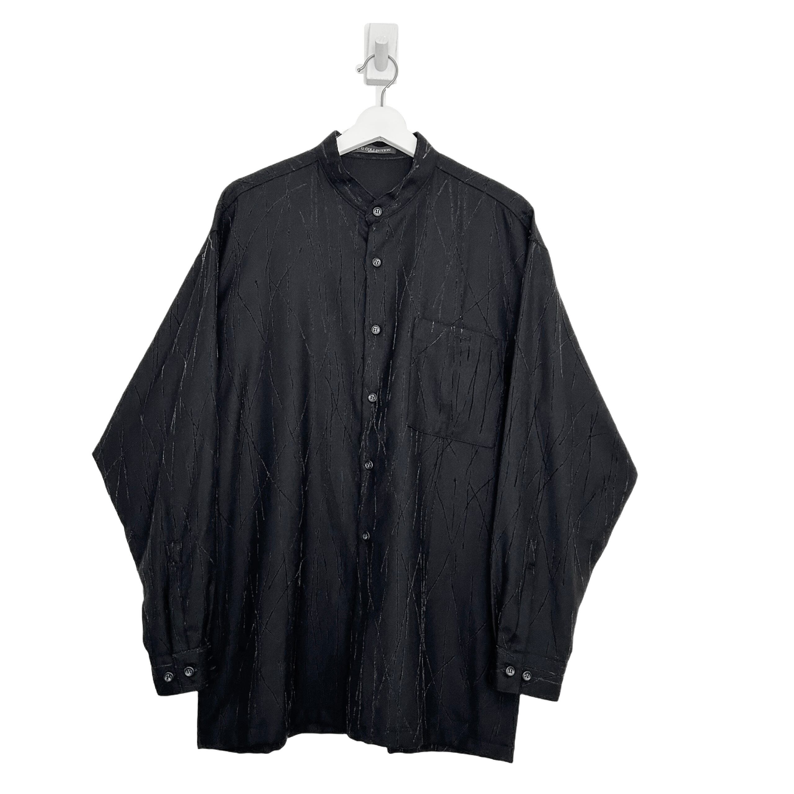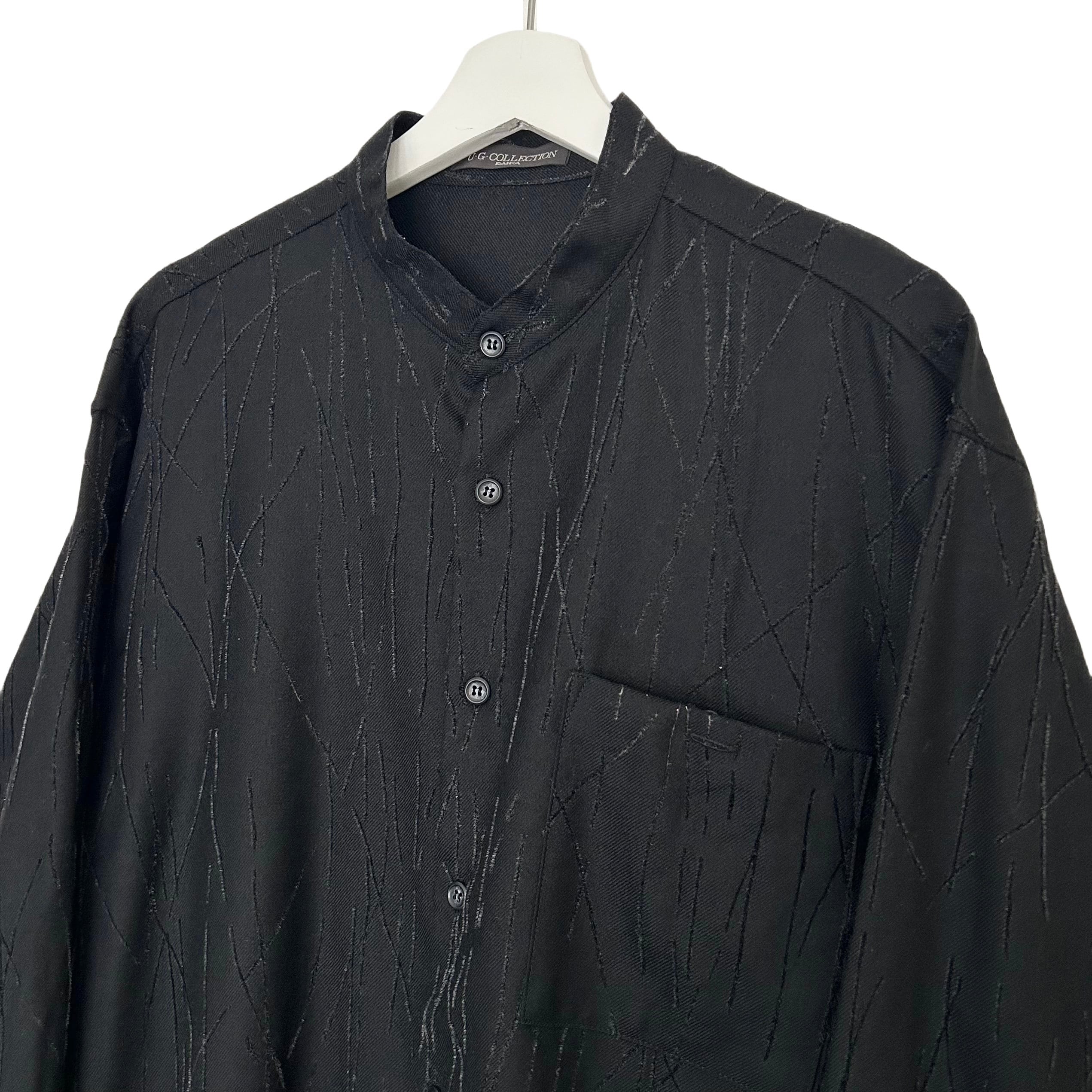 "U.G.COLLECTION"(mens) wool design band collar l/s black shirt