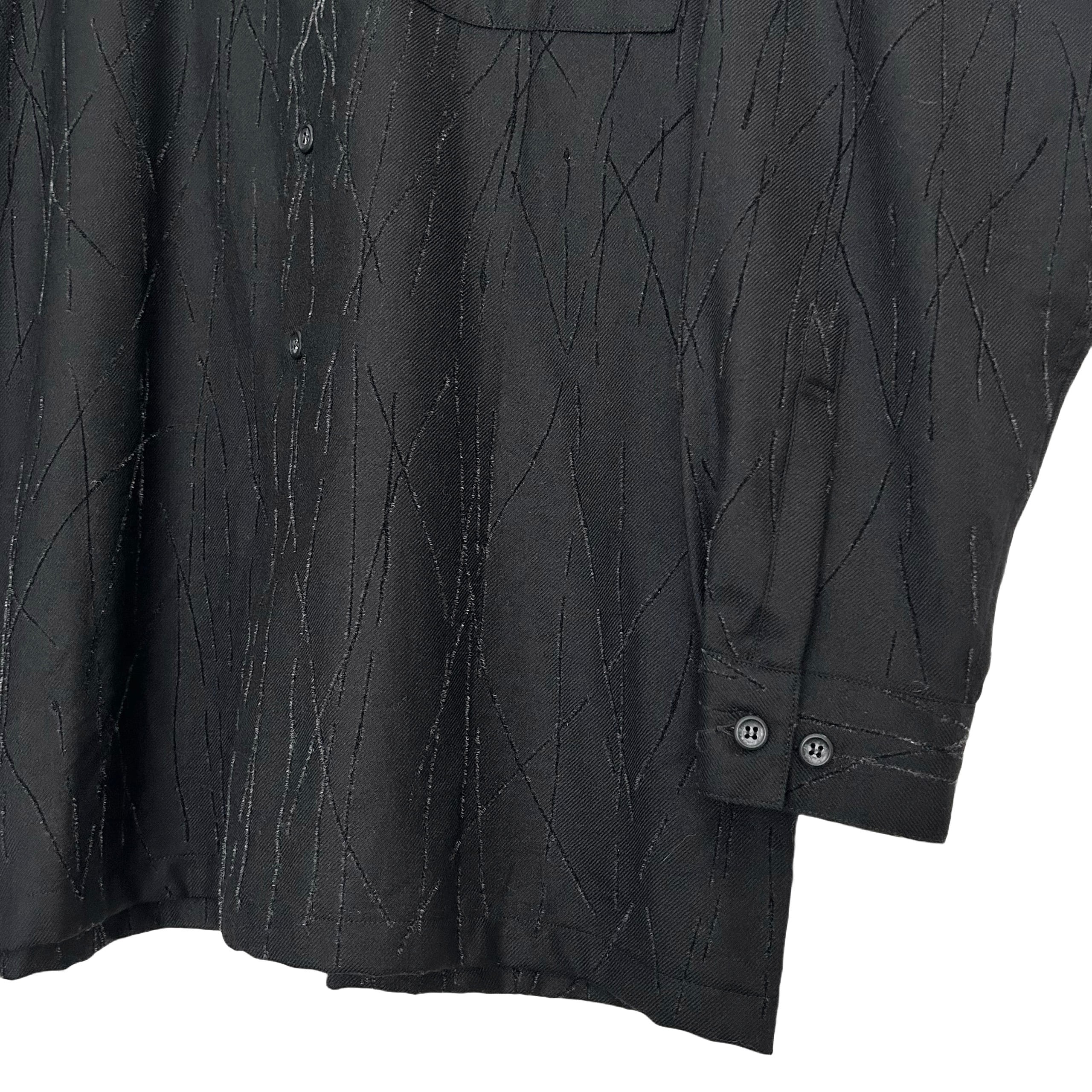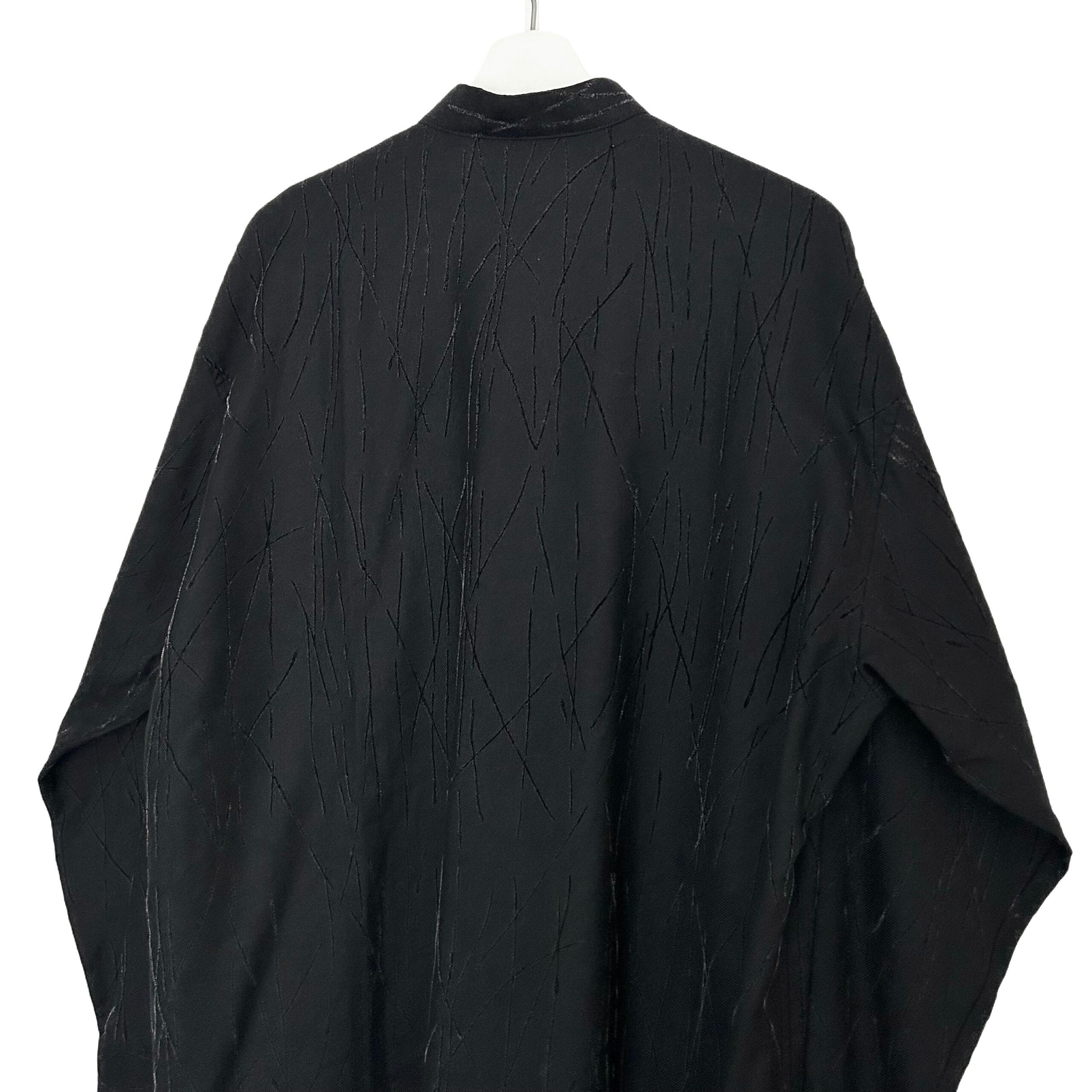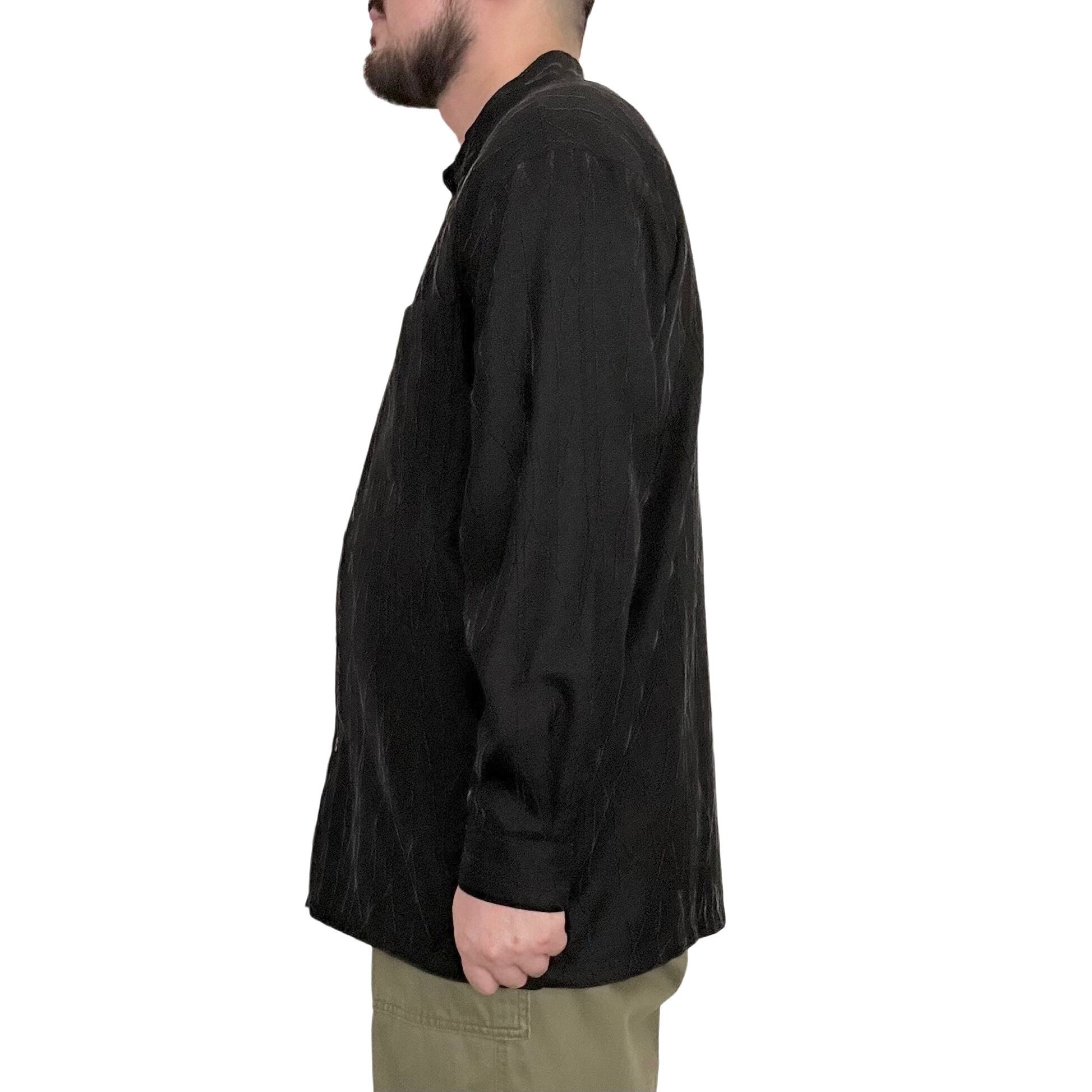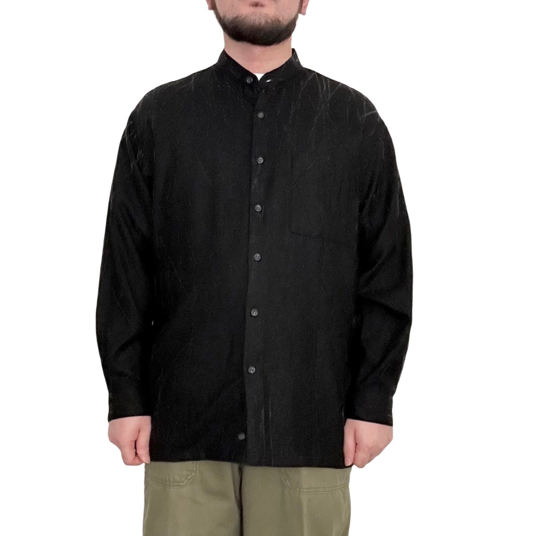 "U.G.COLLECTION"(mens) wool design band collar l/s black shirt