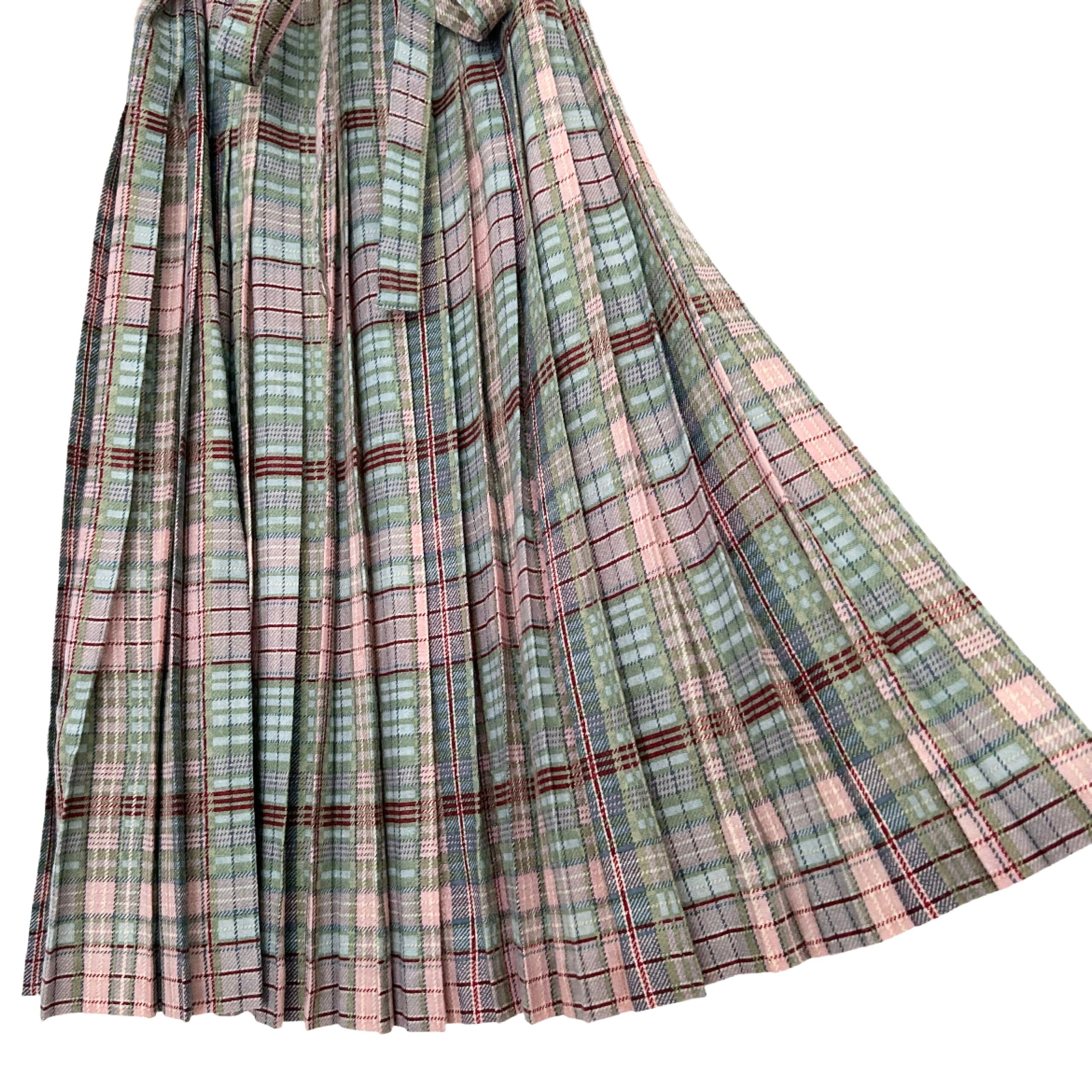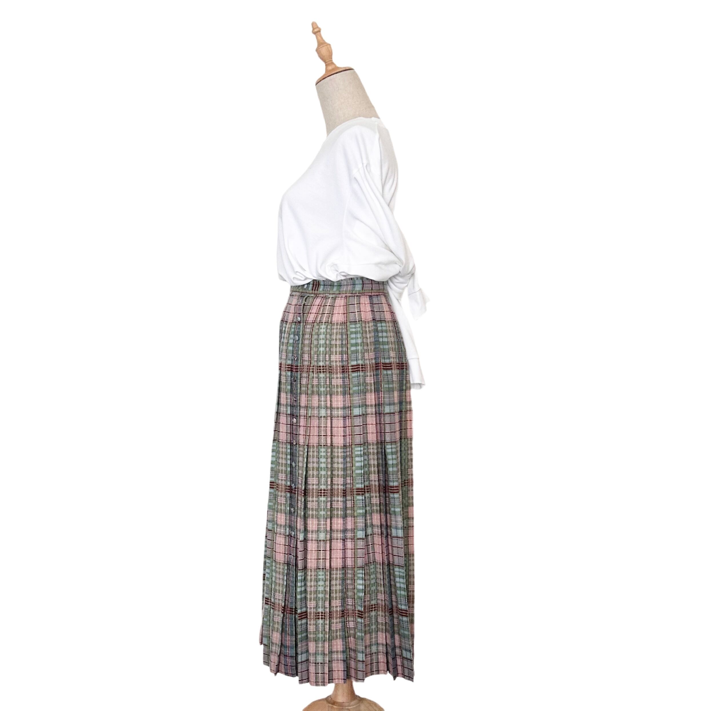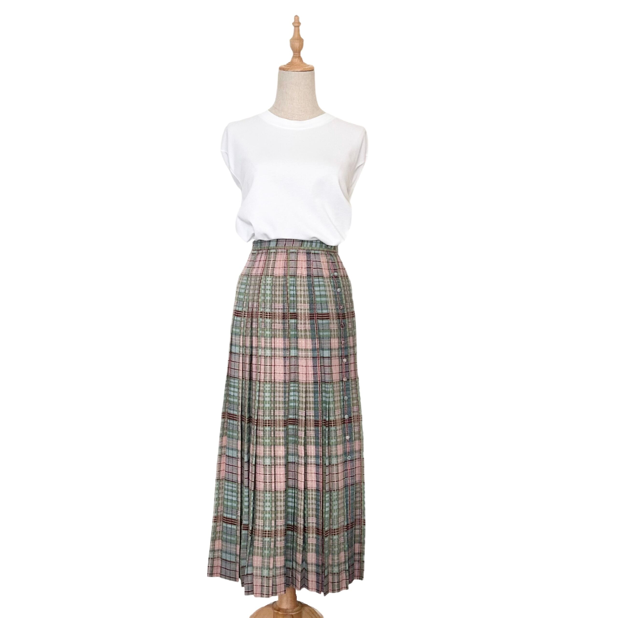 "KANEKO ISAO"(womens) check pattern wool pleats long skirt