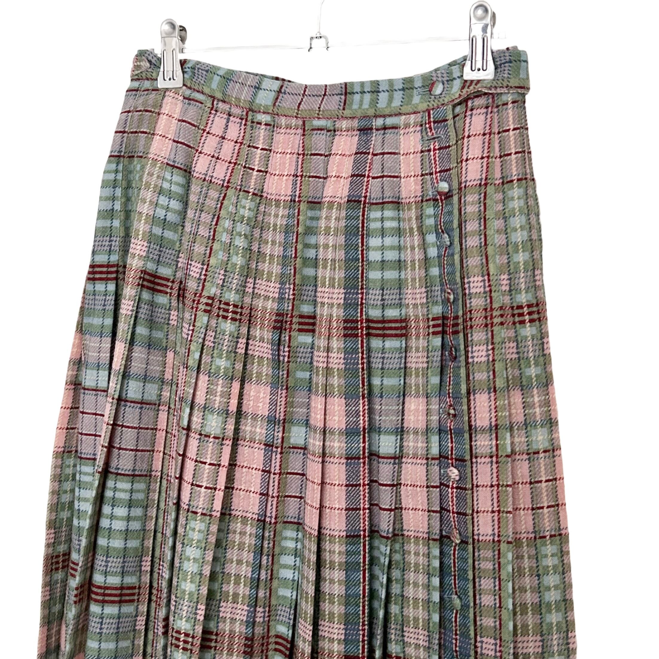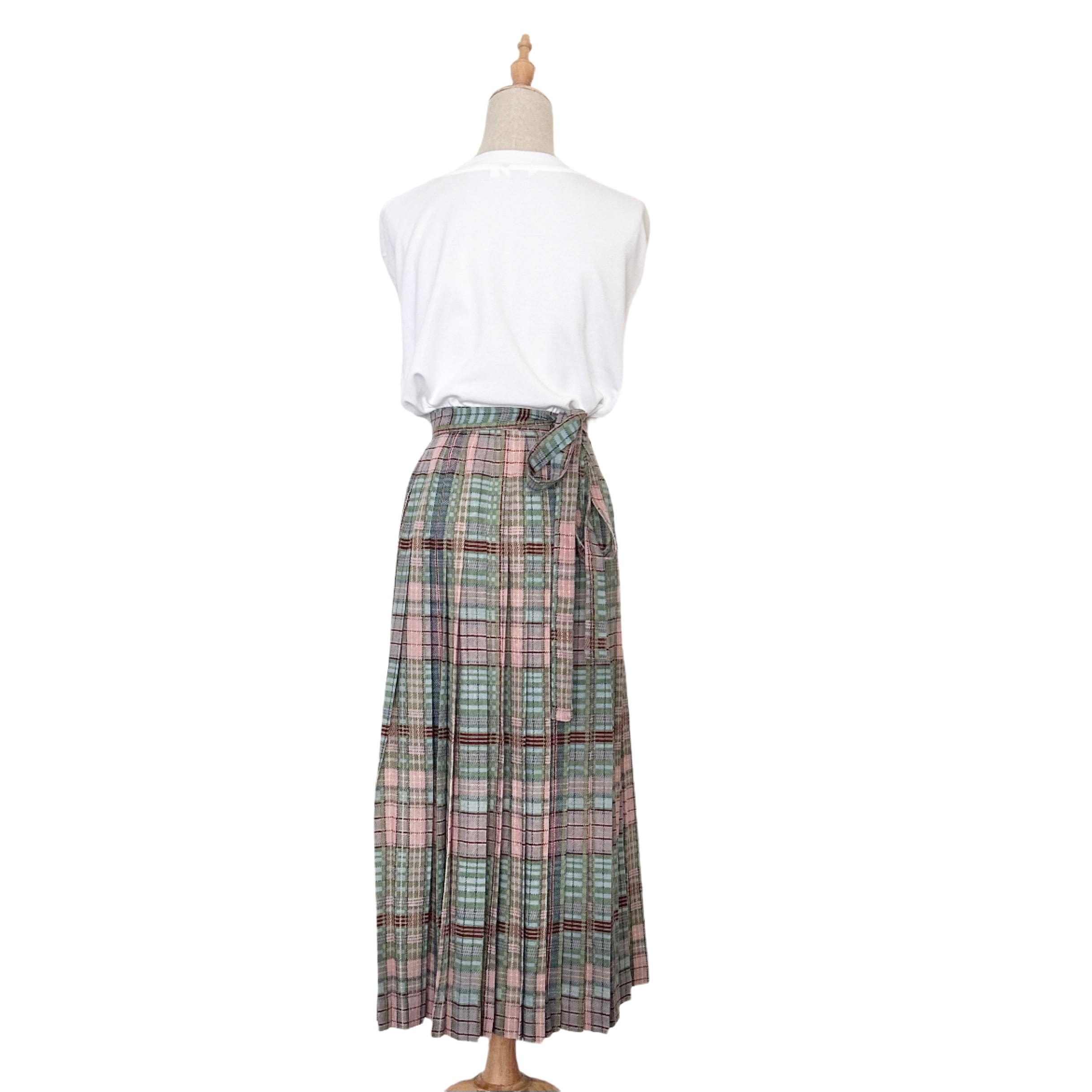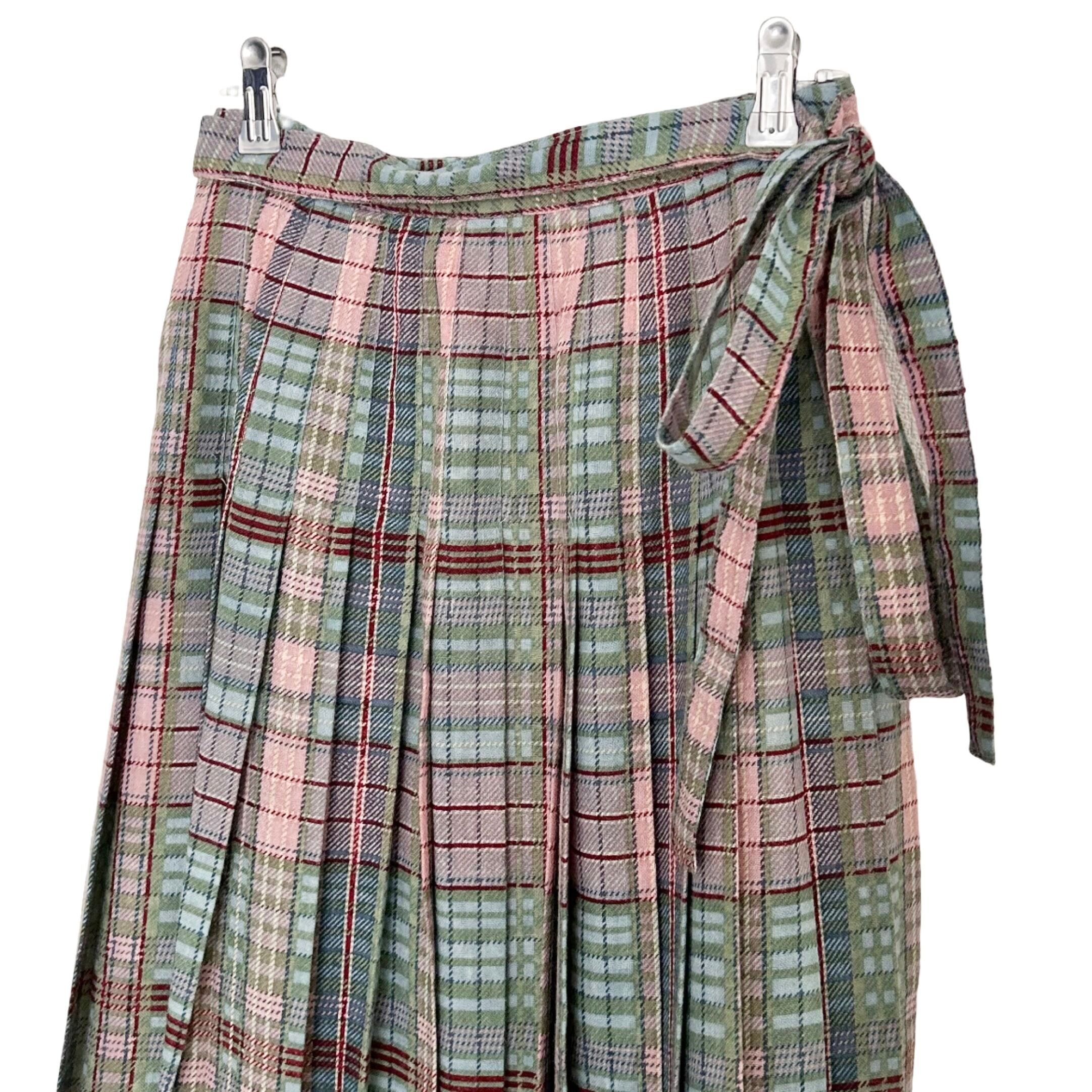 "KANEKO ISAO"(womens) check pattern wool pleats long skirt