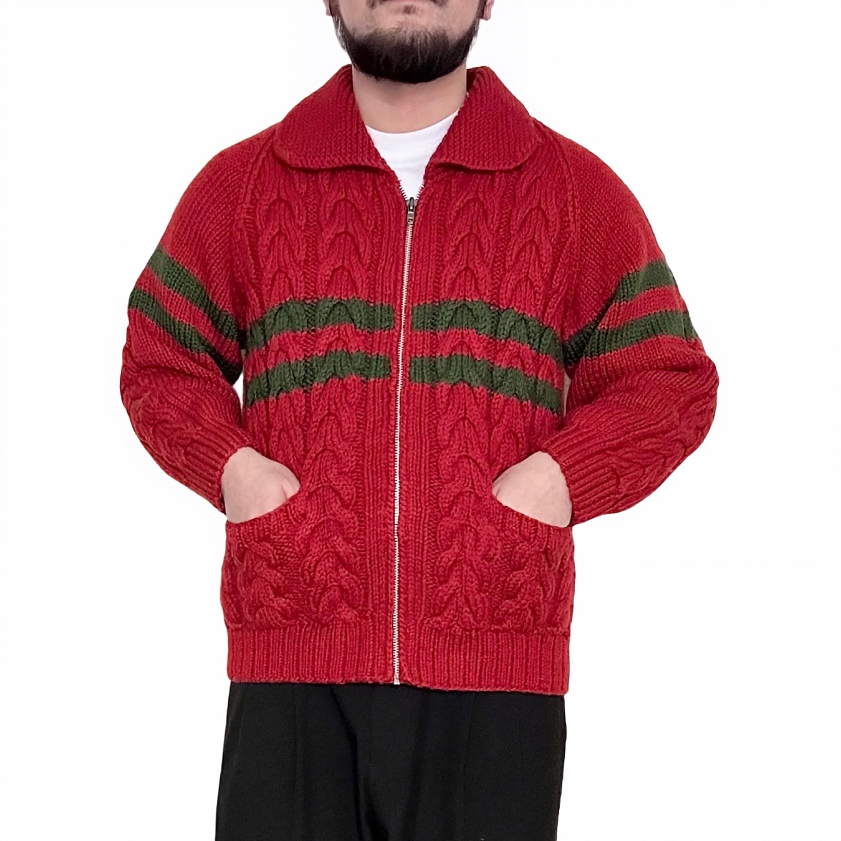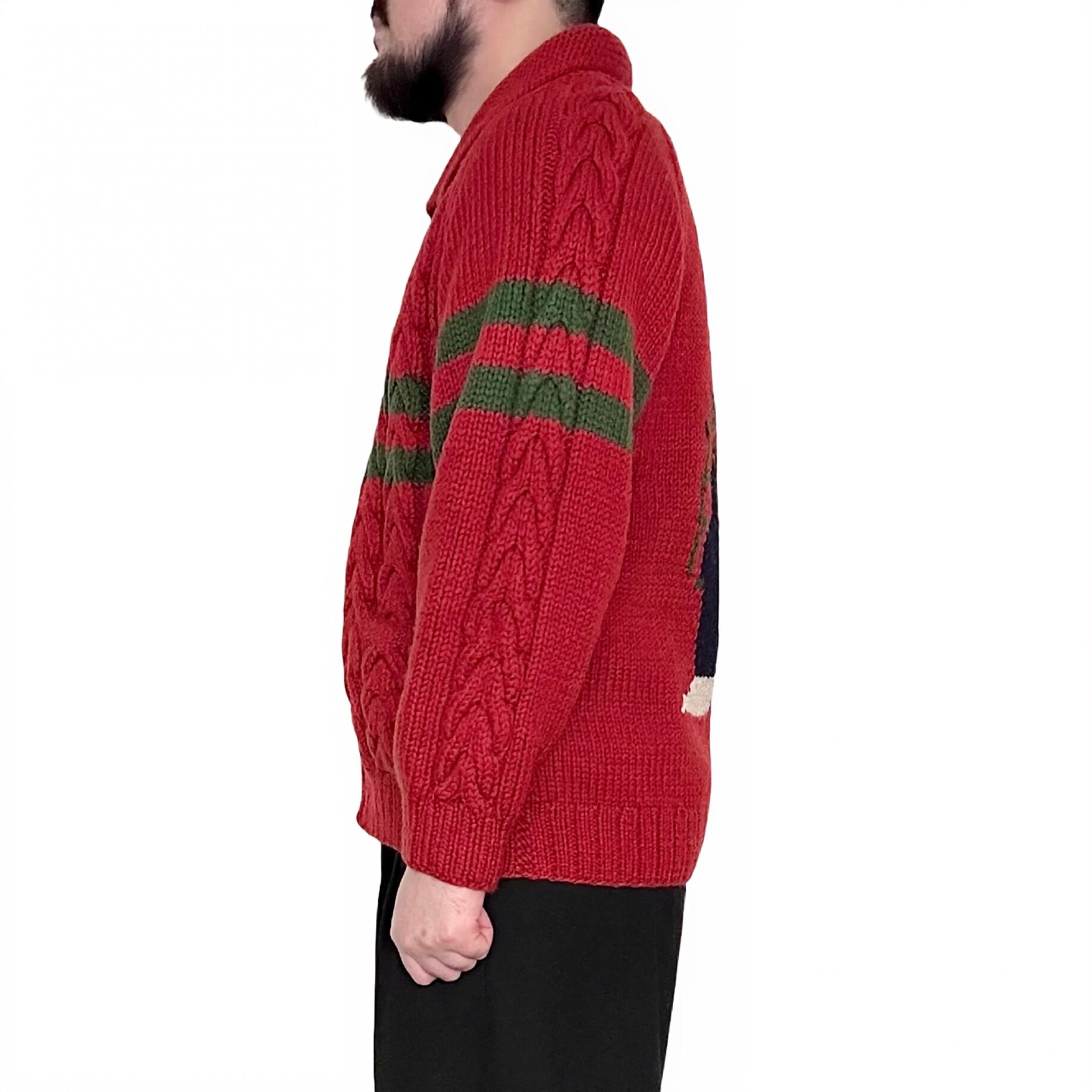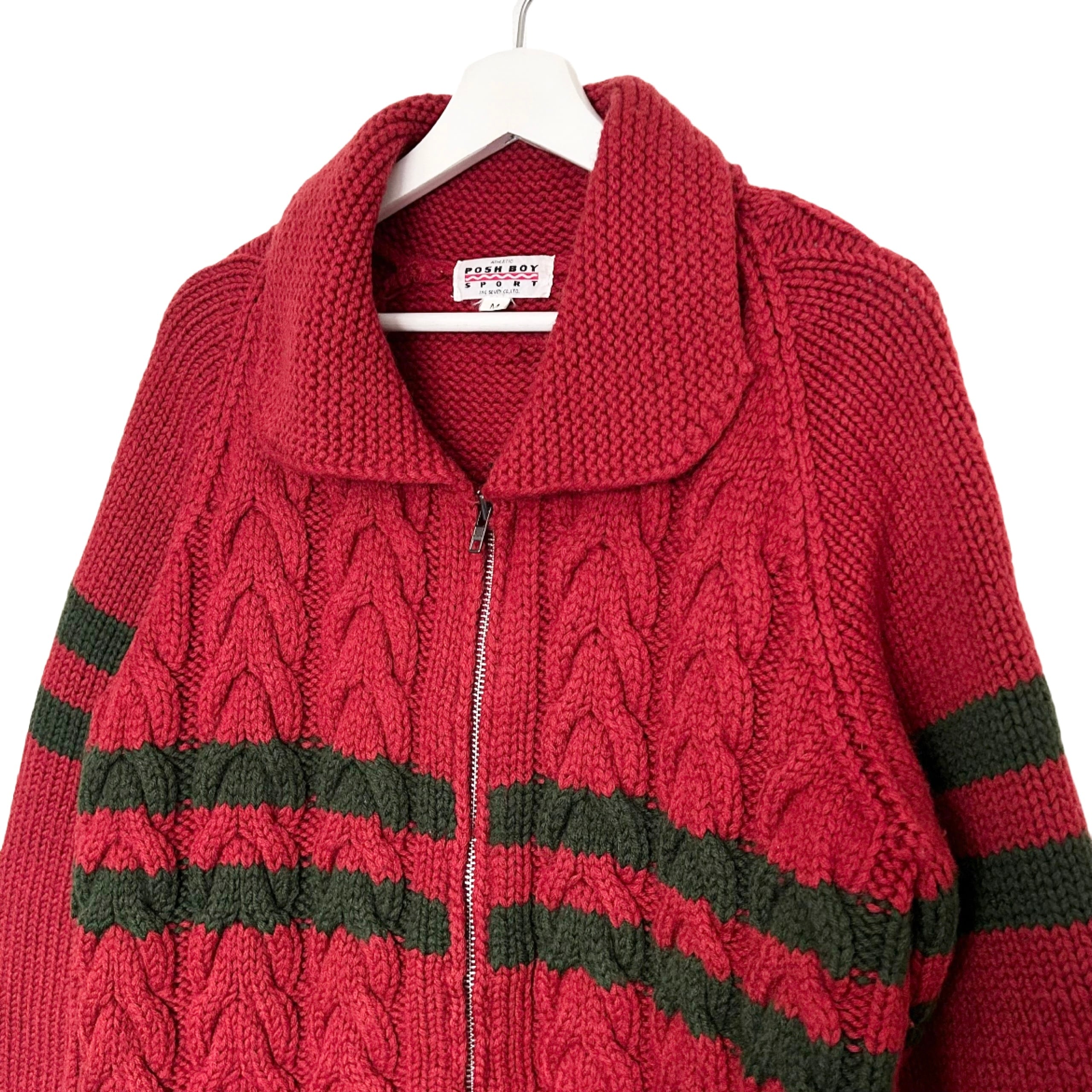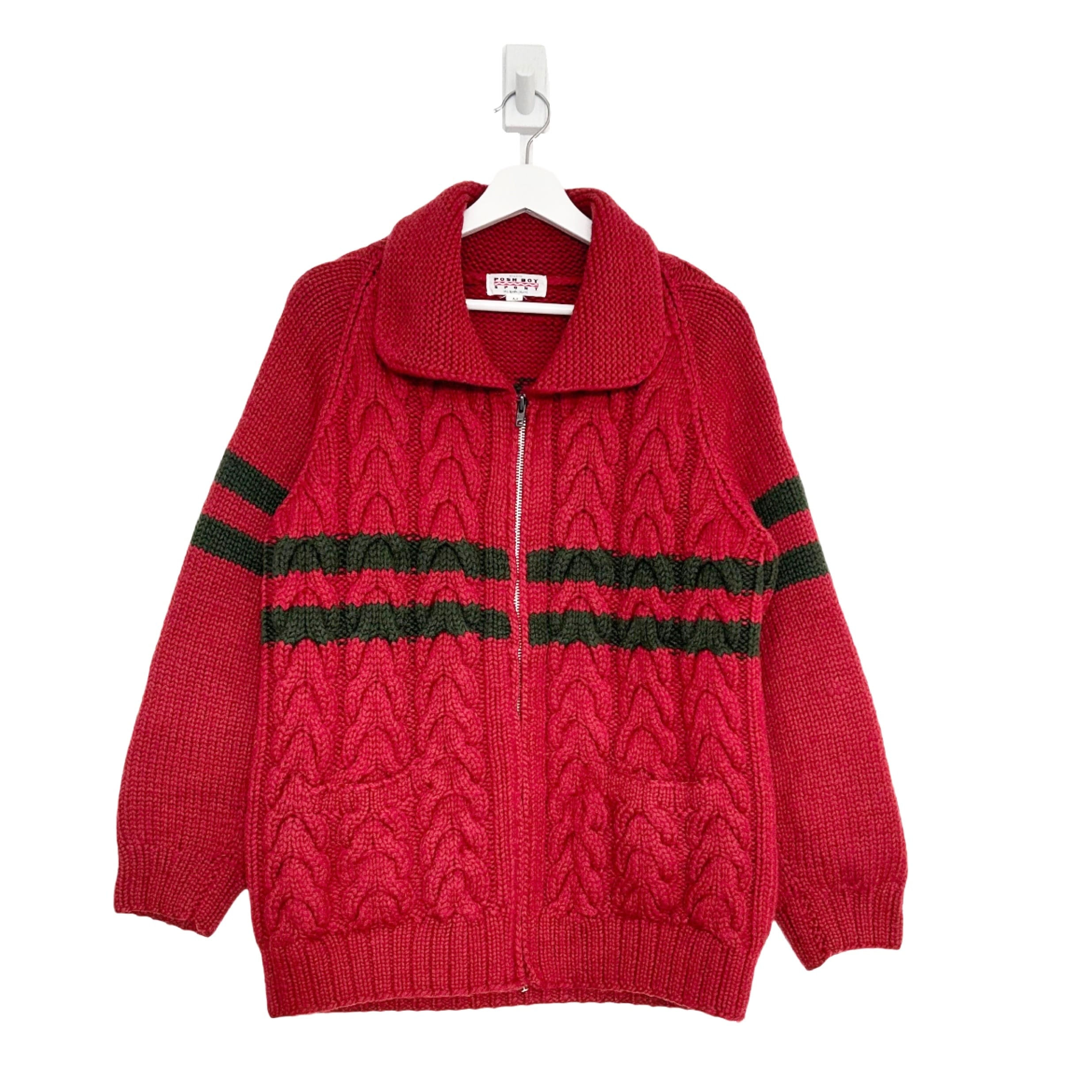 "POSH BOY"(unisex) wool design zip up cowichan sweater
