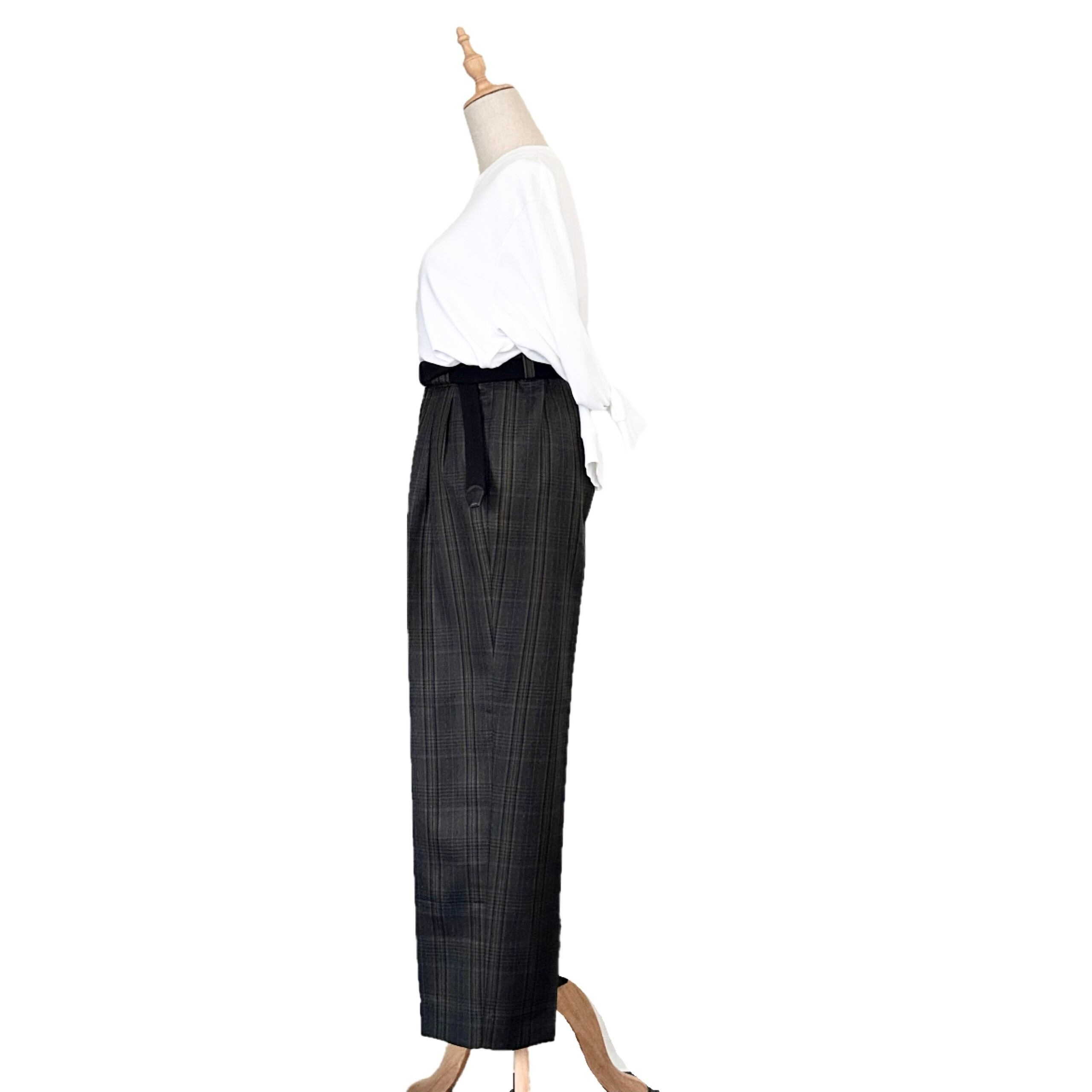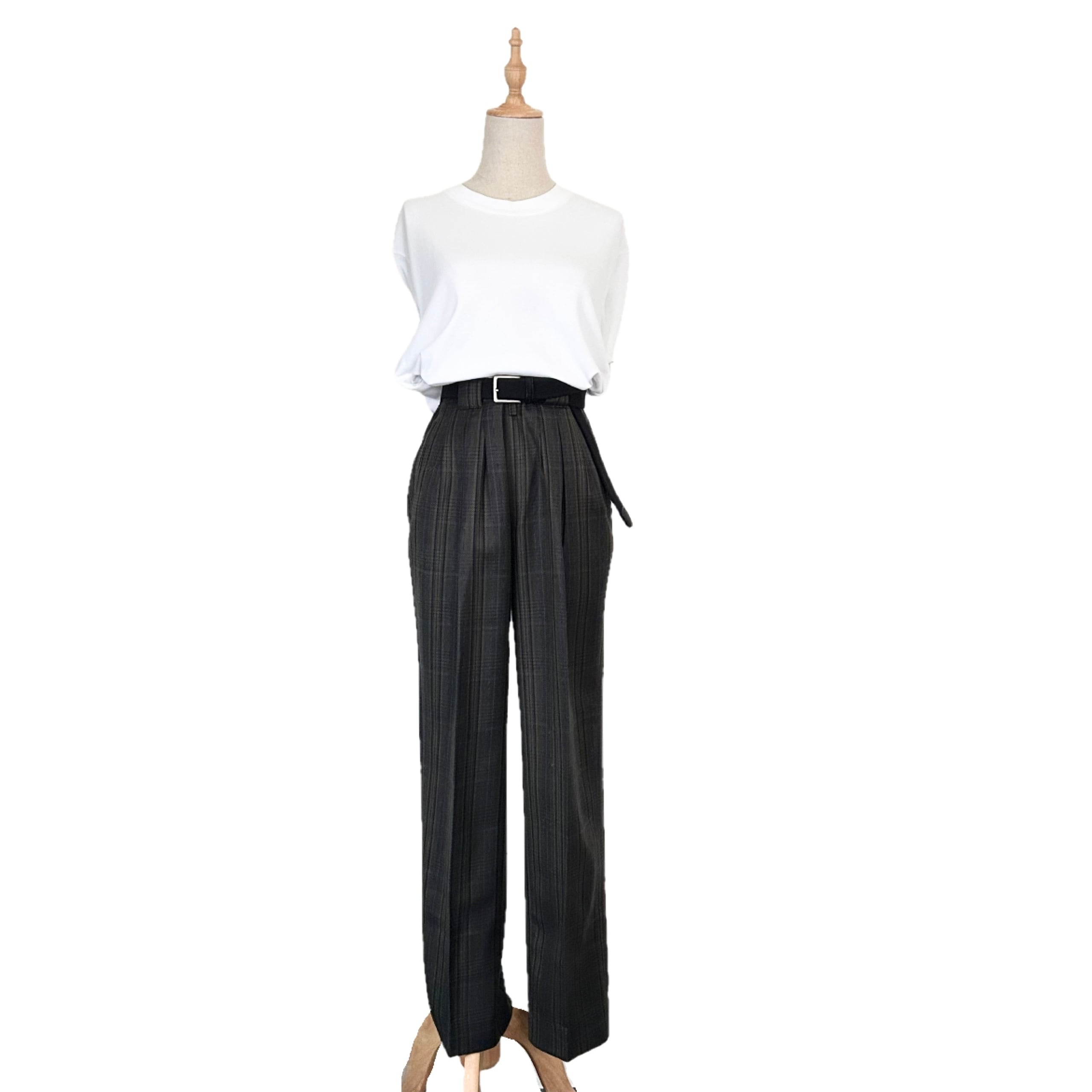 "UMBERTO GINOCCHIETTI"(unisex) wool/silk 2-tuck check pattern trousers