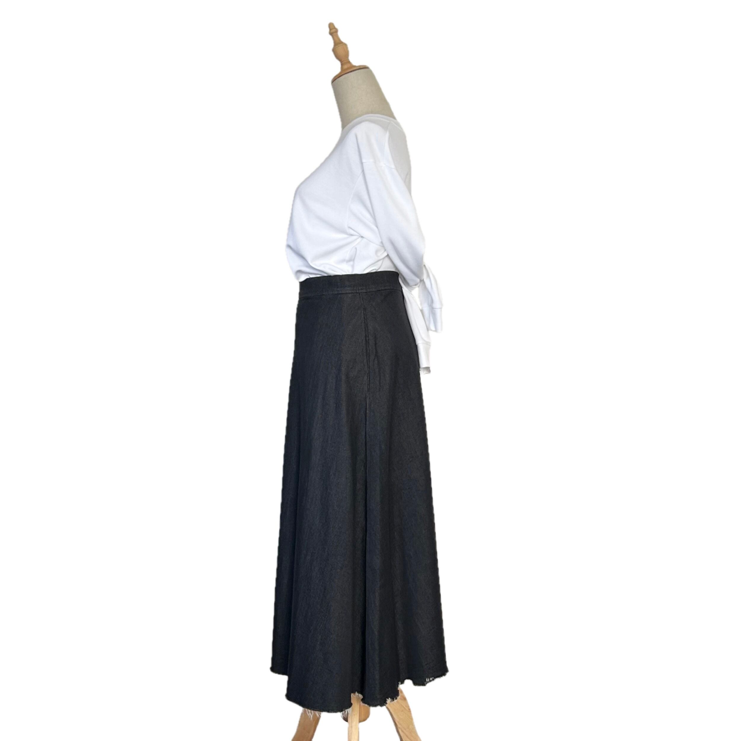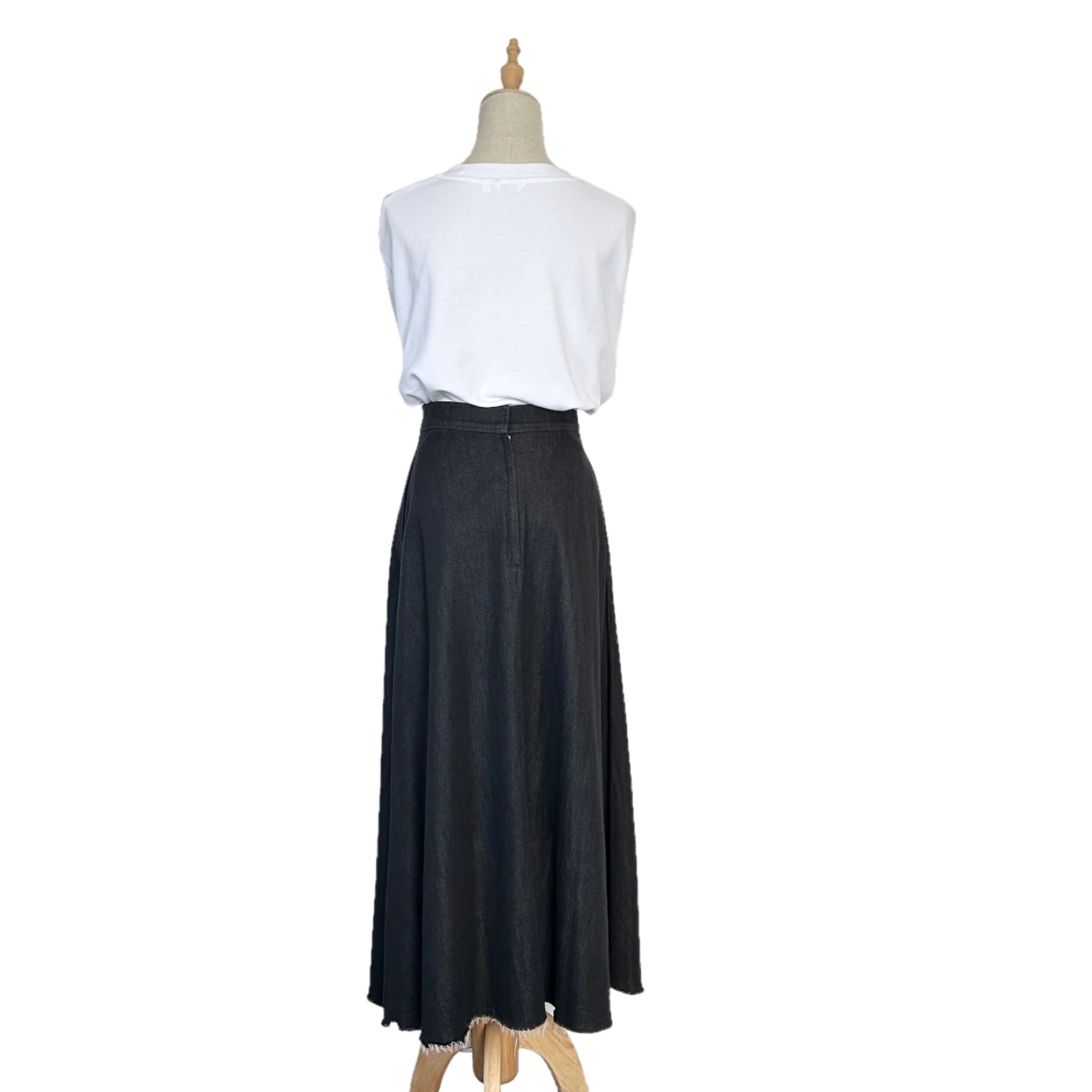"BLENHEIM"(womens) black denim design long flare skirt