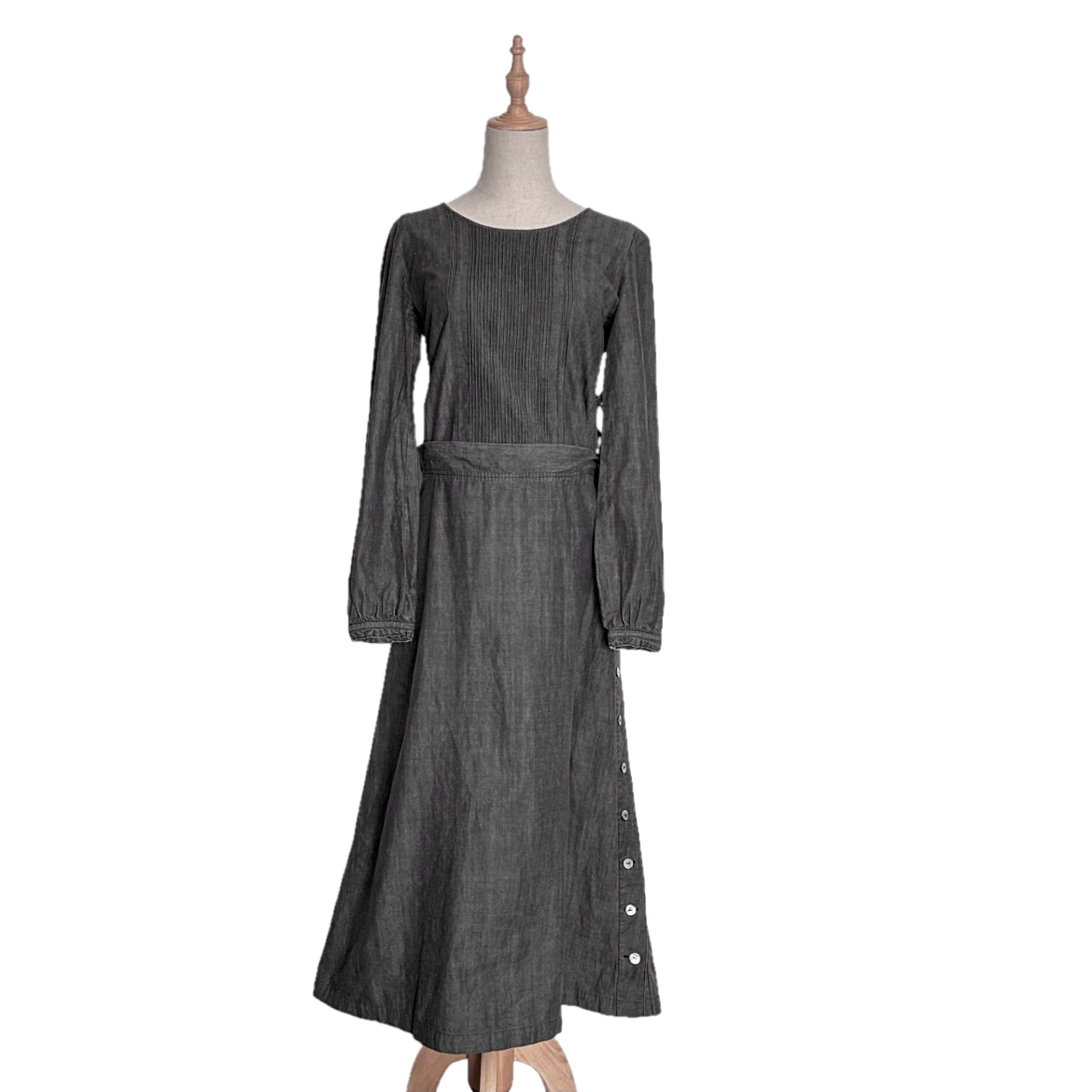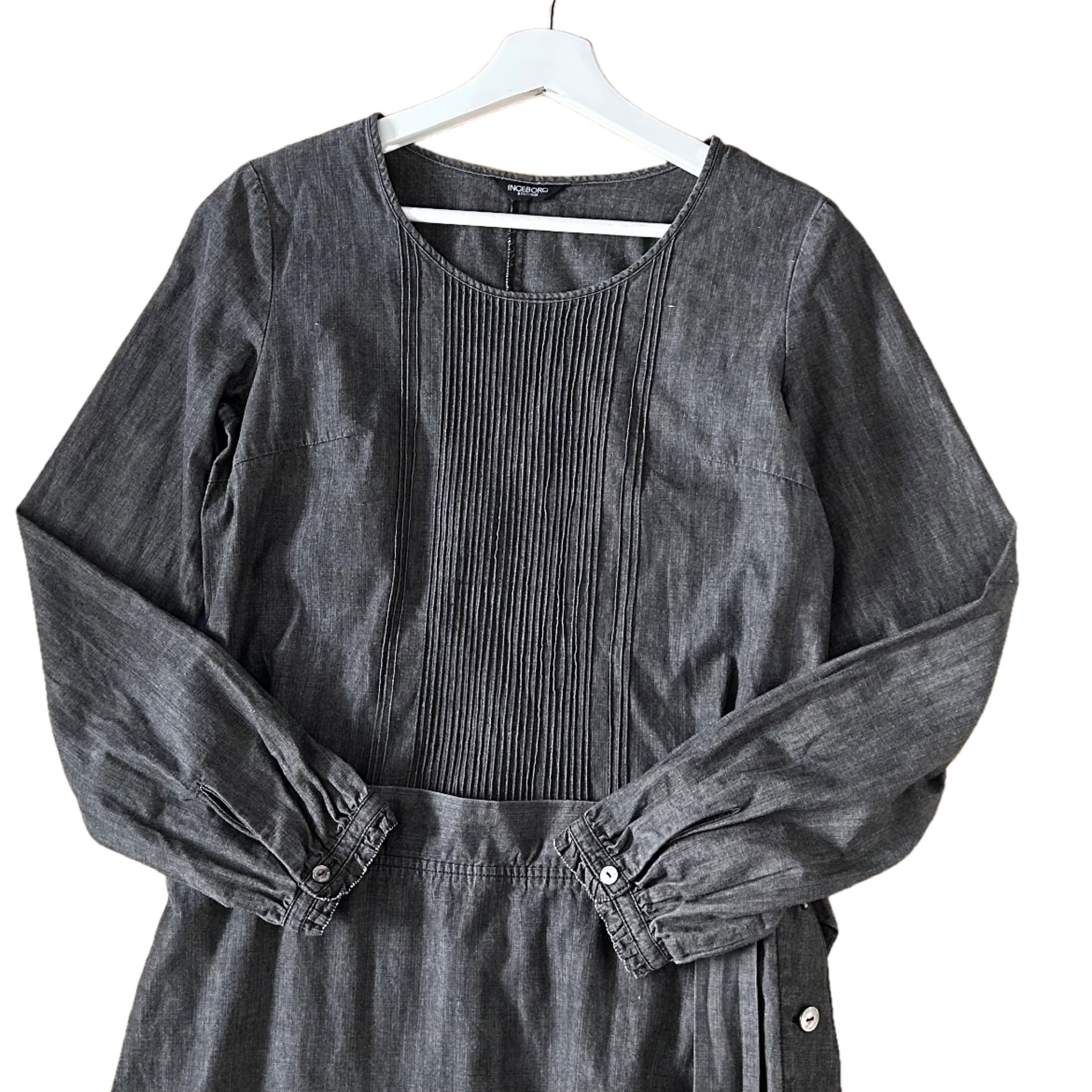 "INGEBORG"(womens) black chambray design long shirt one-piece