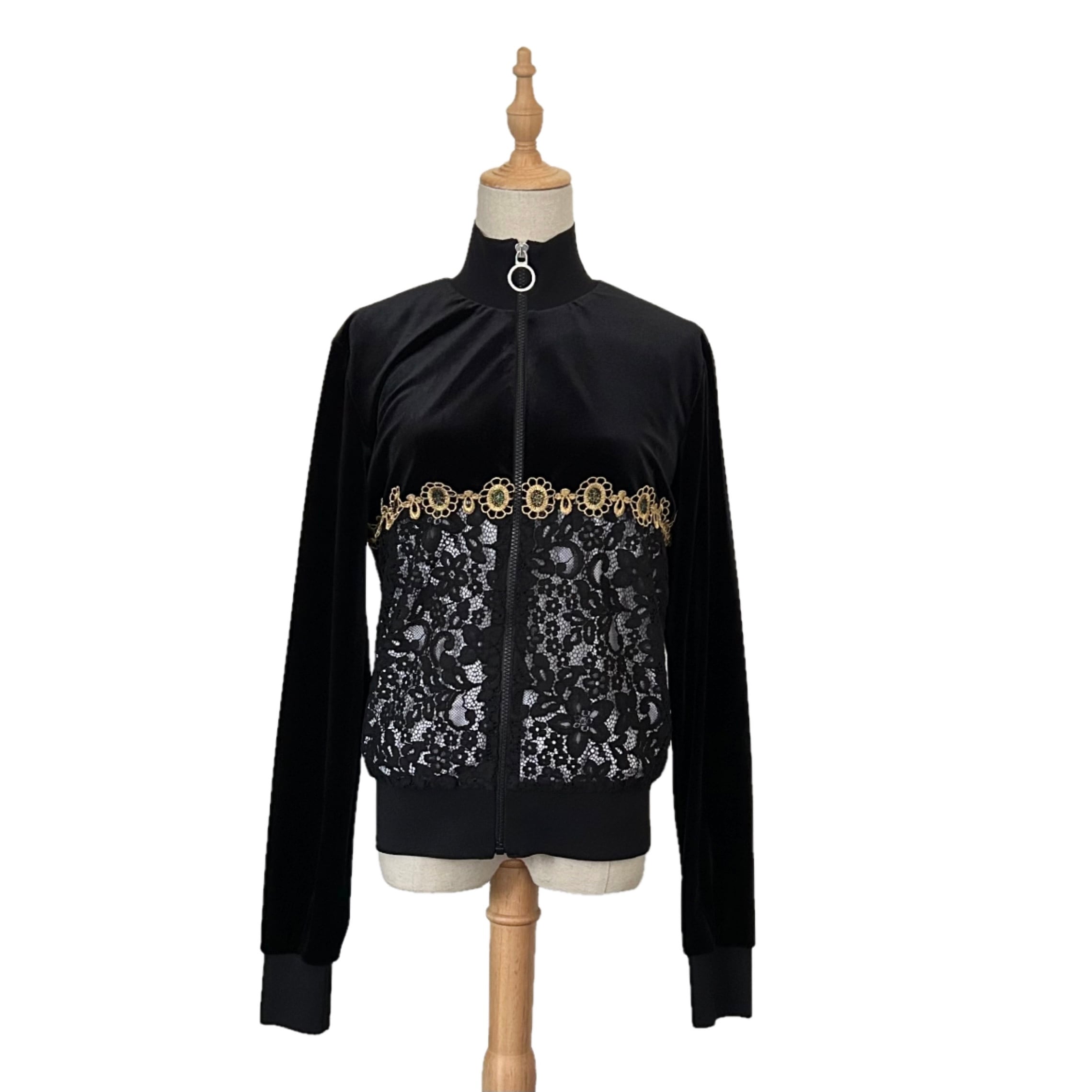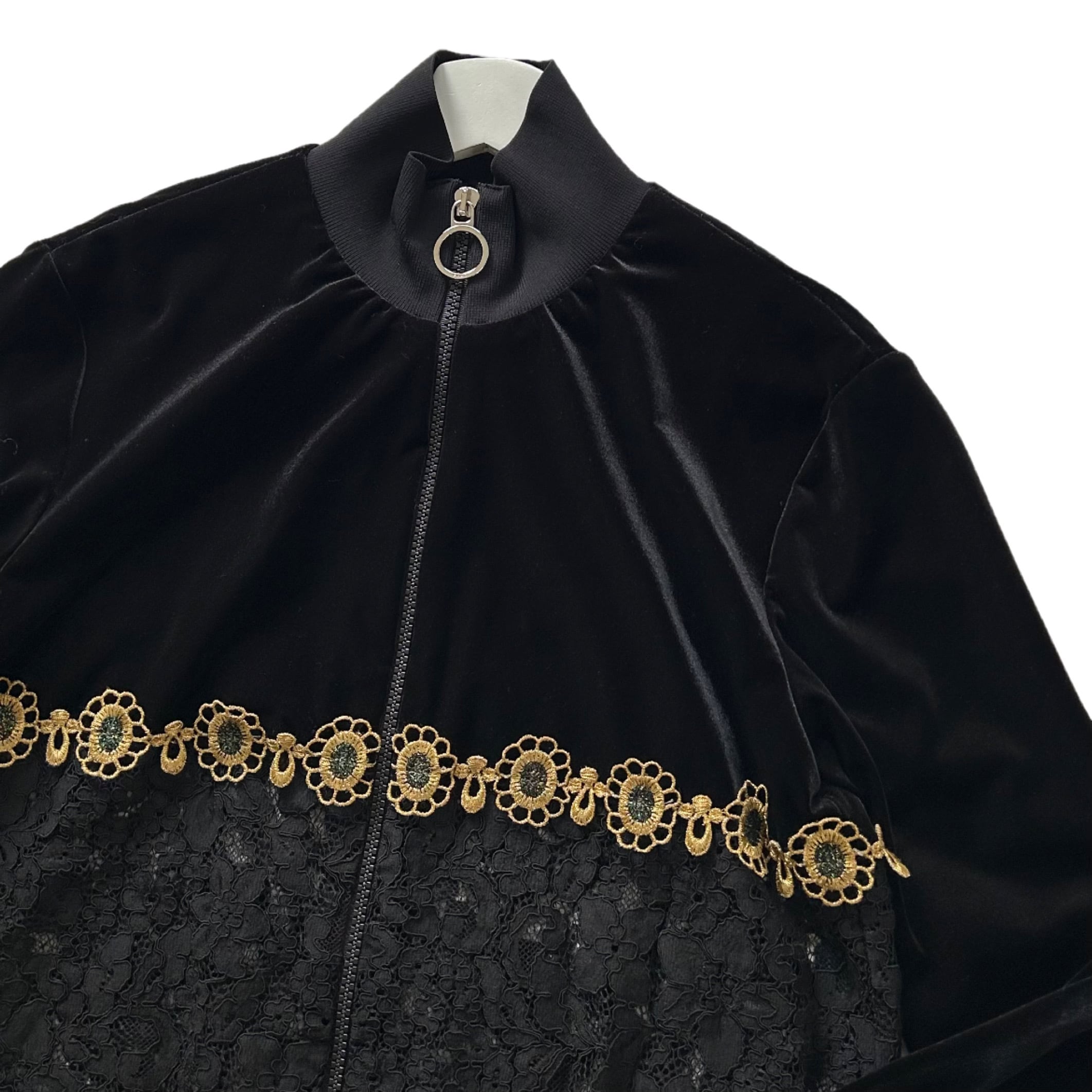 "PINKO"(womens) velours ✖︎ lace design zip up blouson