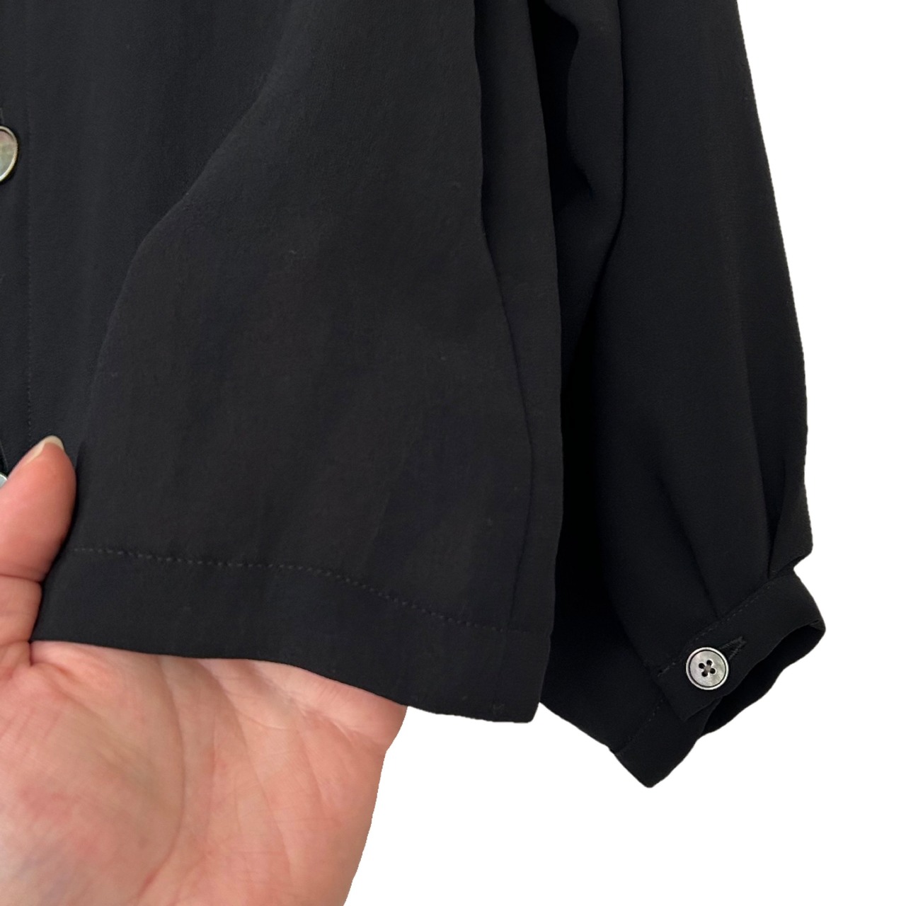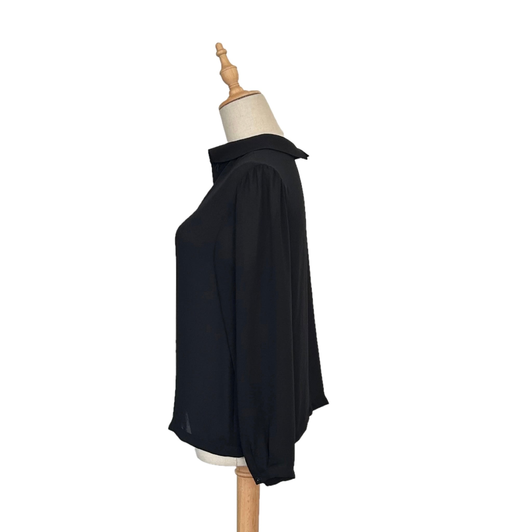 "PLAIN PEOPLE"(womens) polyester design l/s black shirt