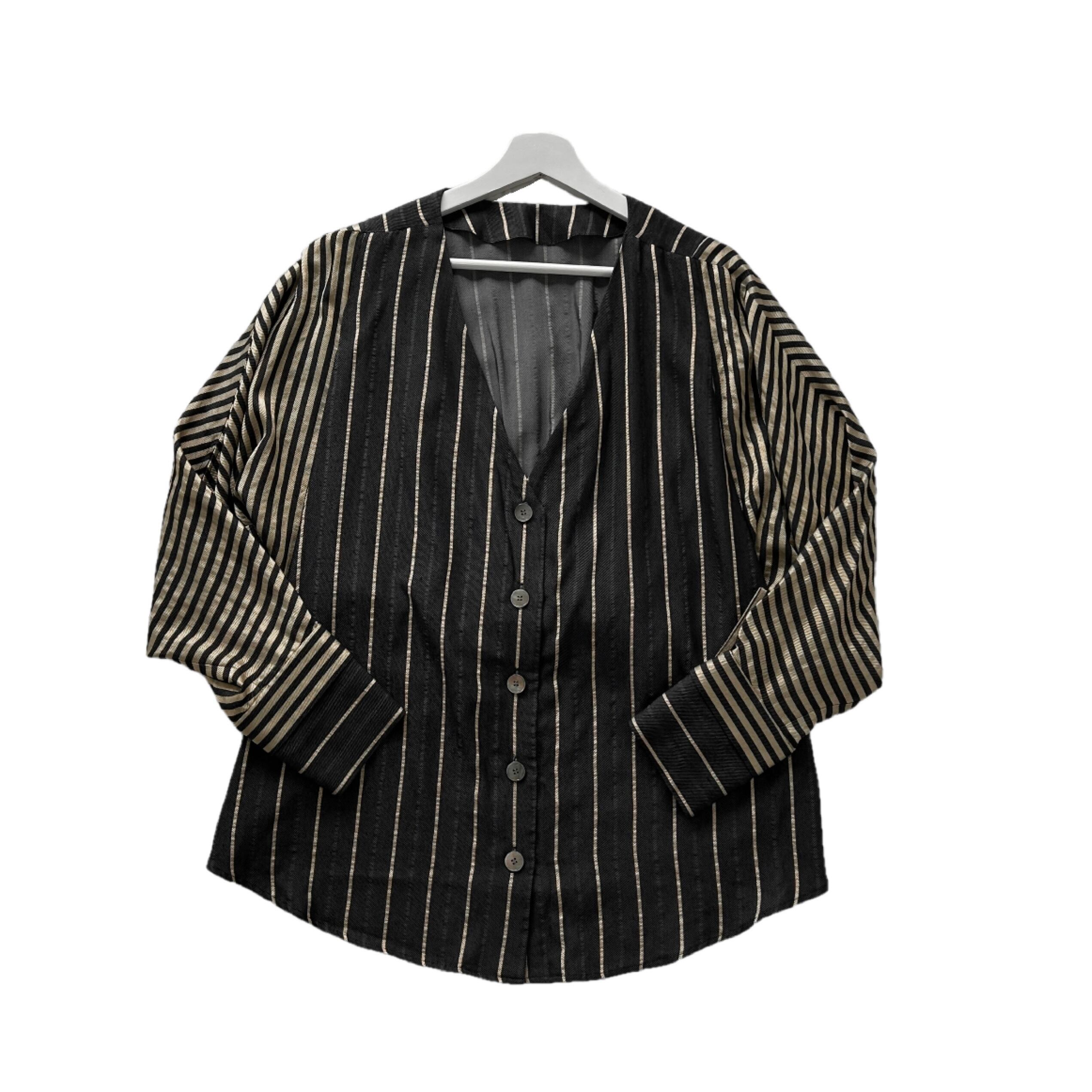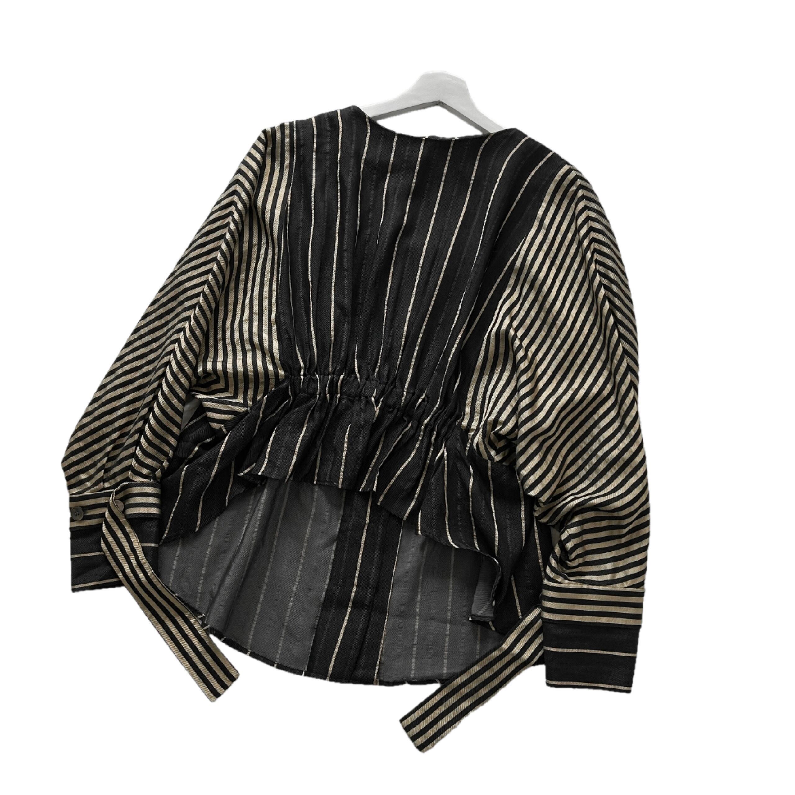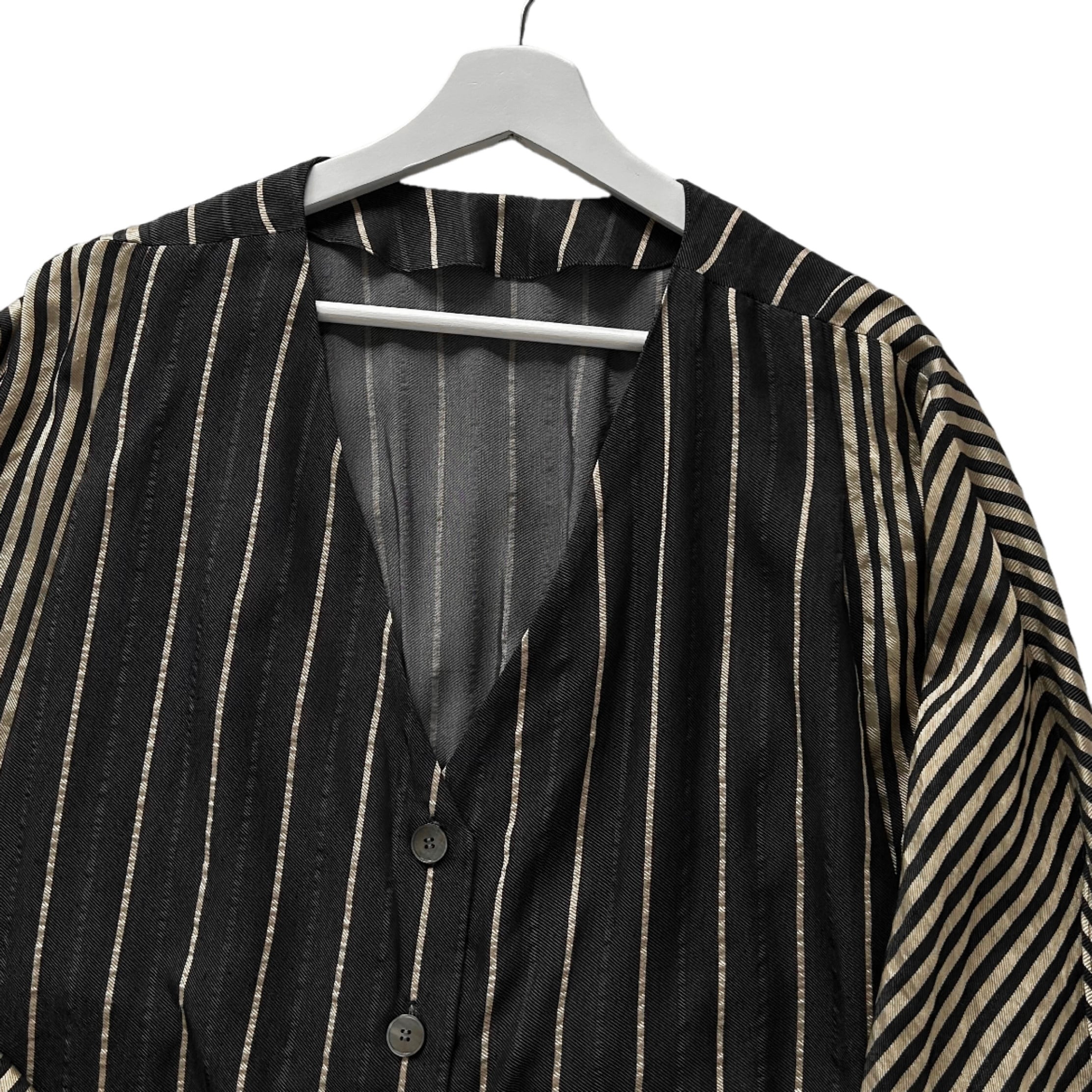 "Rito"(womens) no collar design l/s stripe shirt