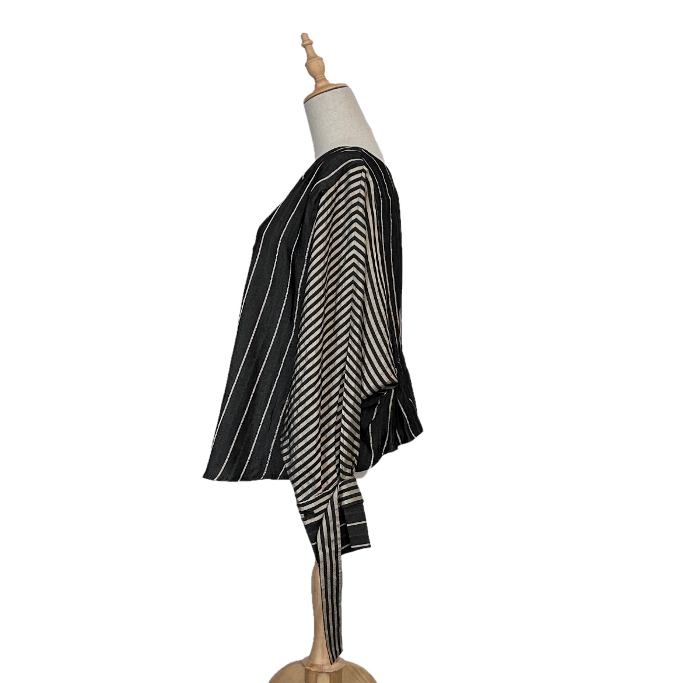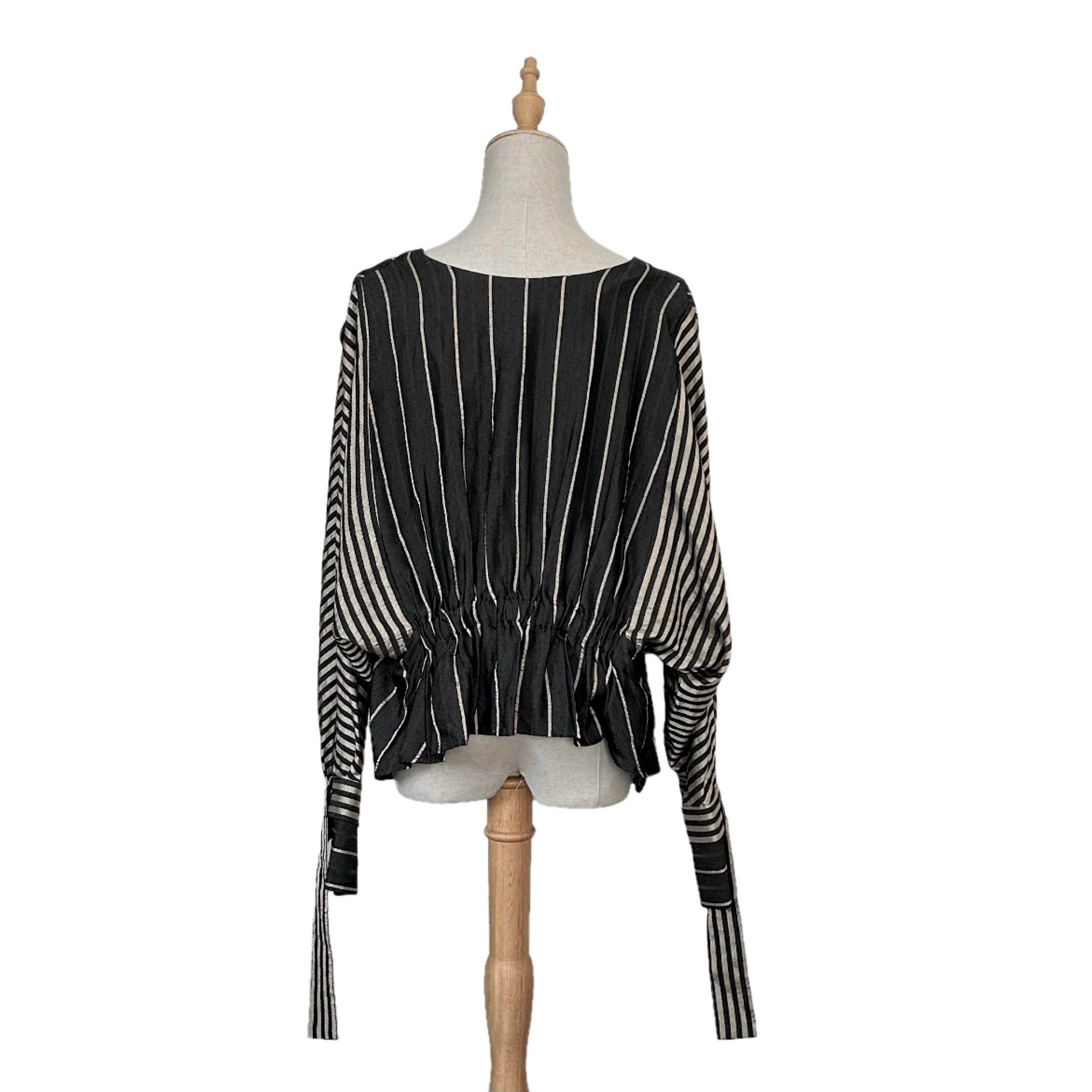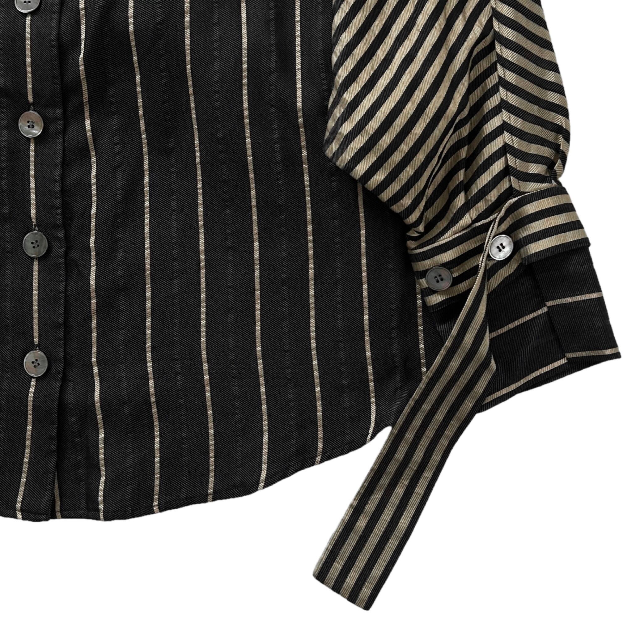 "Rito"(womens) no collar design l/s stripe shirt