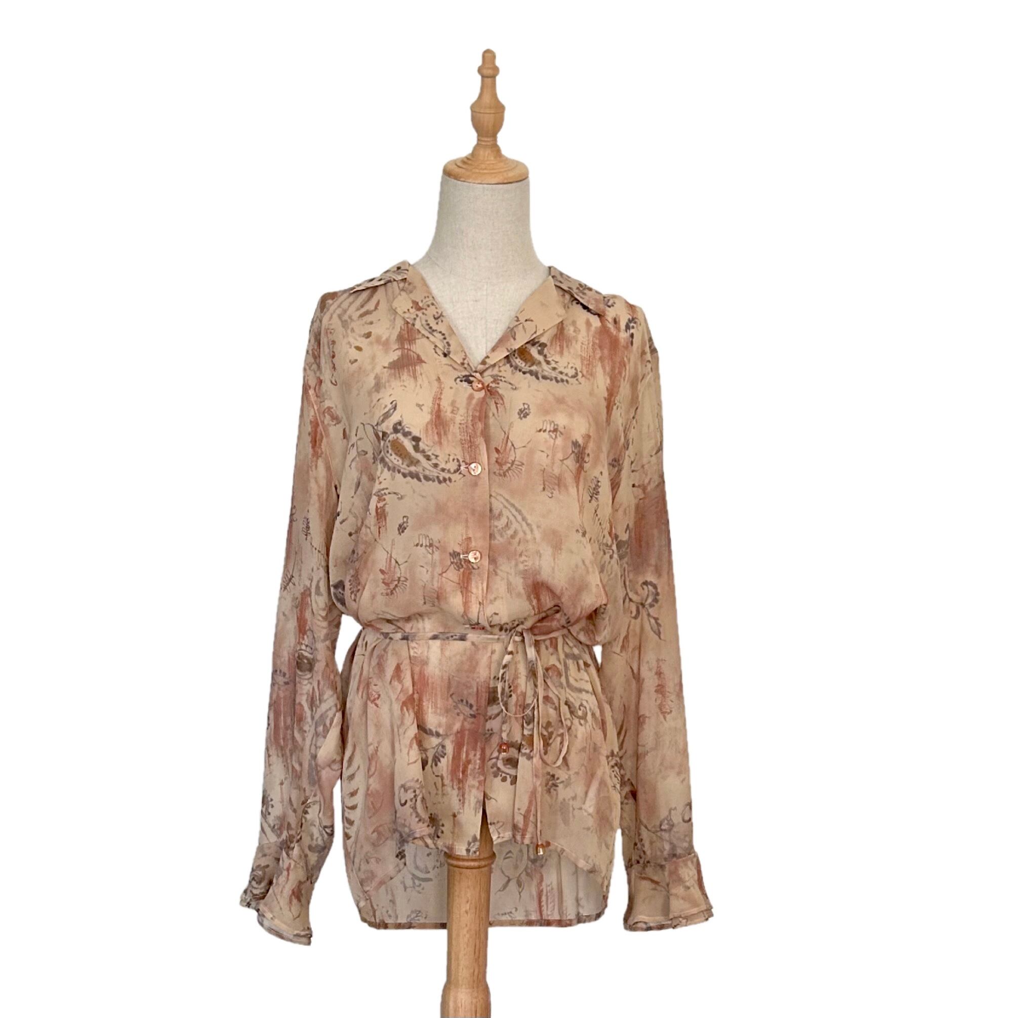 "MARINA RINALDI"(womens) silk 100% design open collar l/s shirt