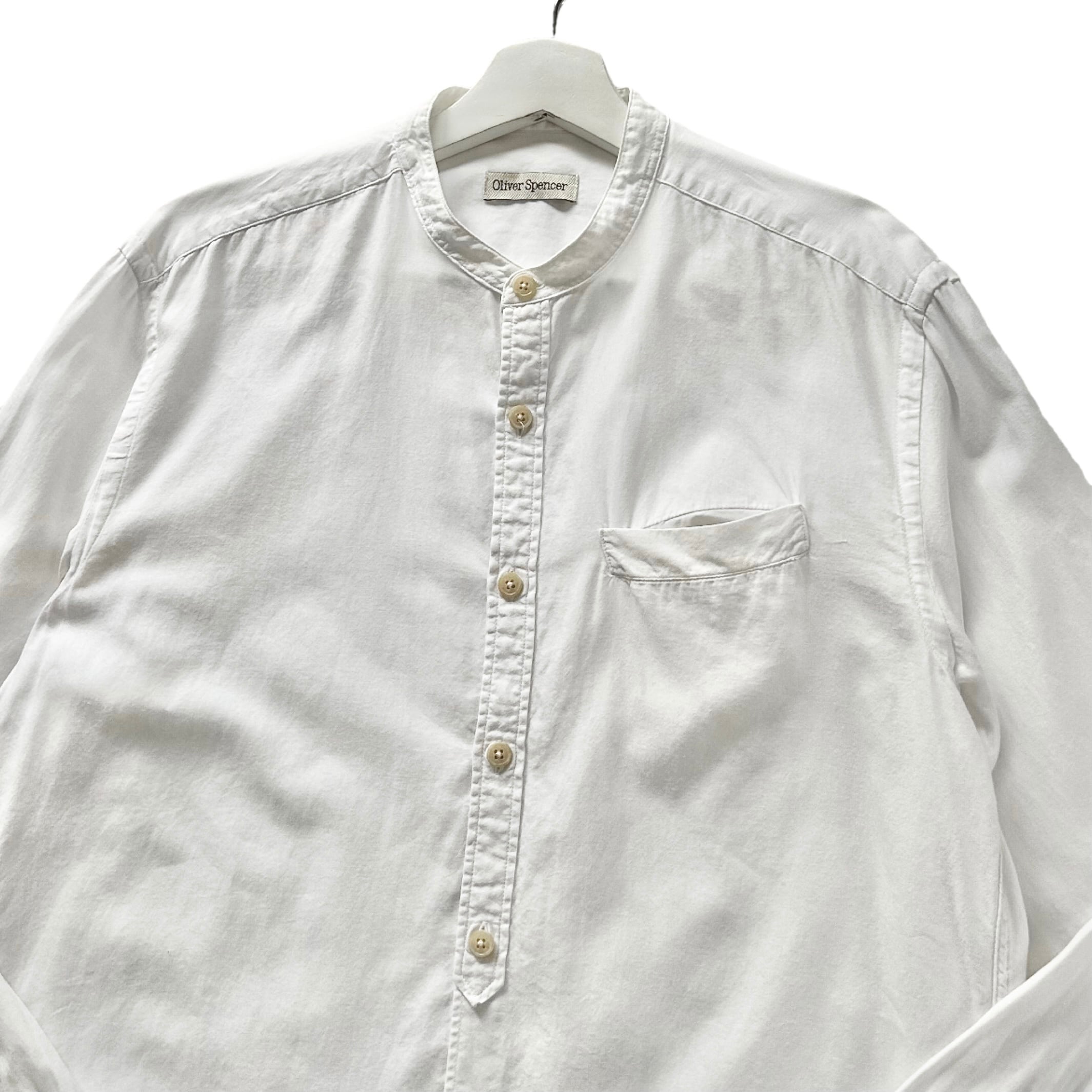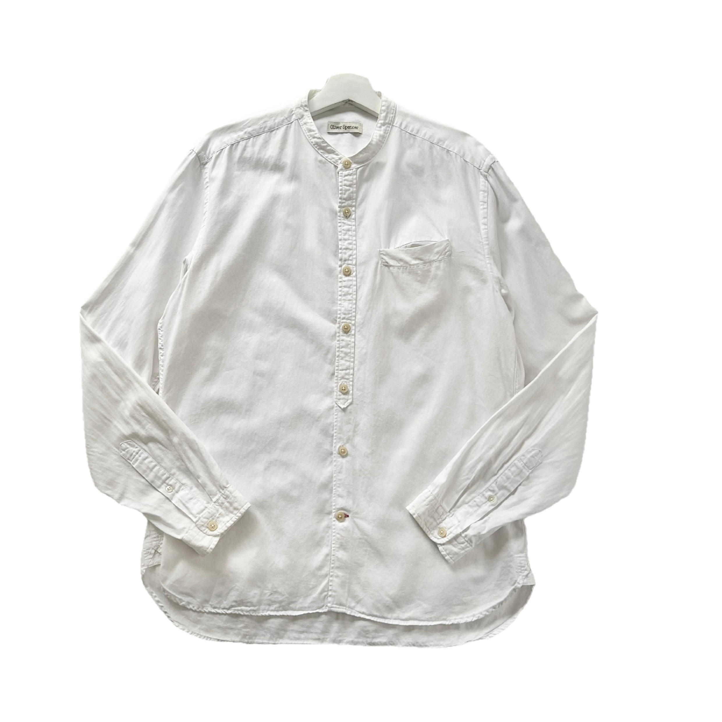 "Oliver Spencer"(mens) cotton band collar l/s white shirt