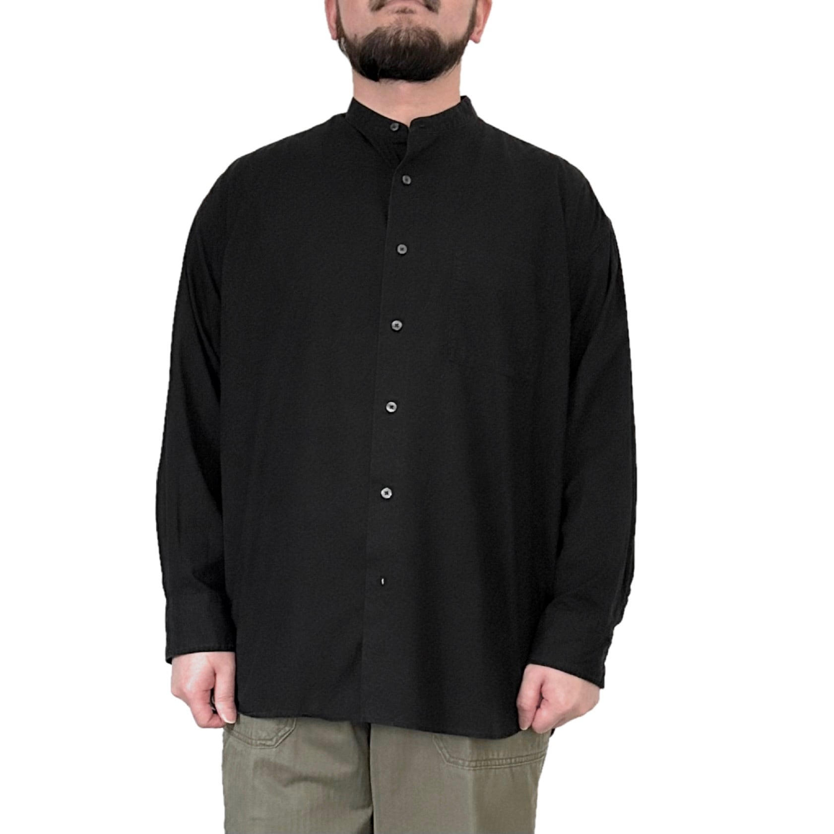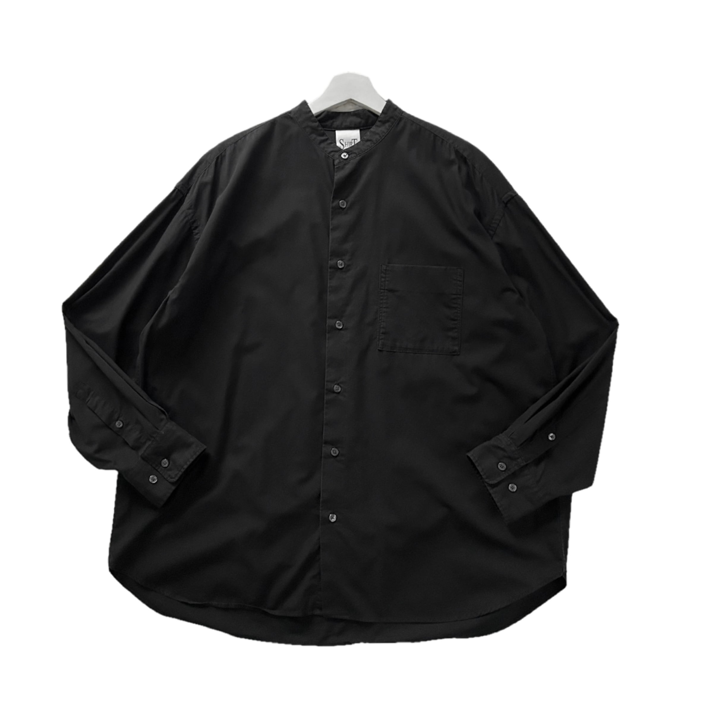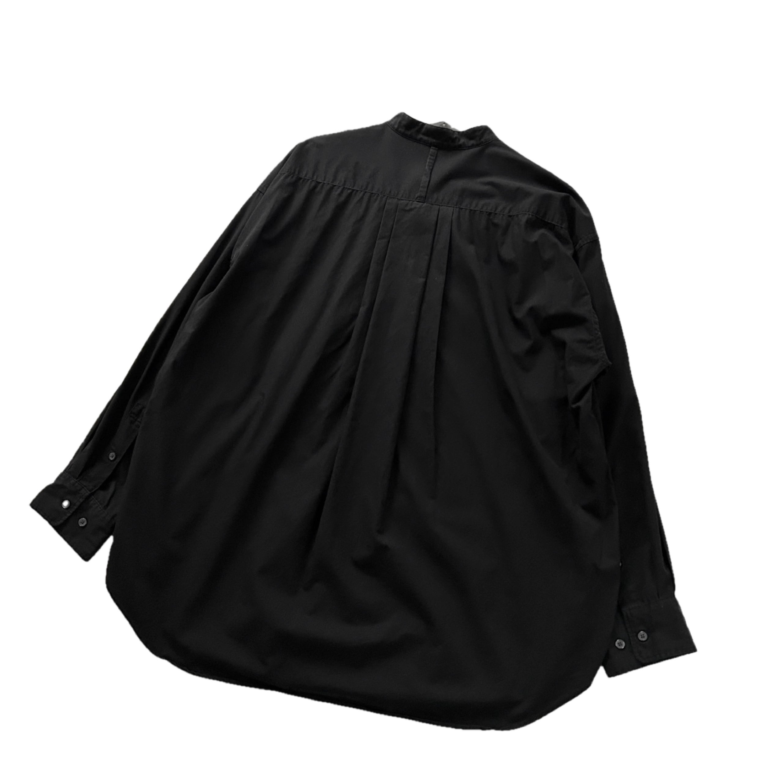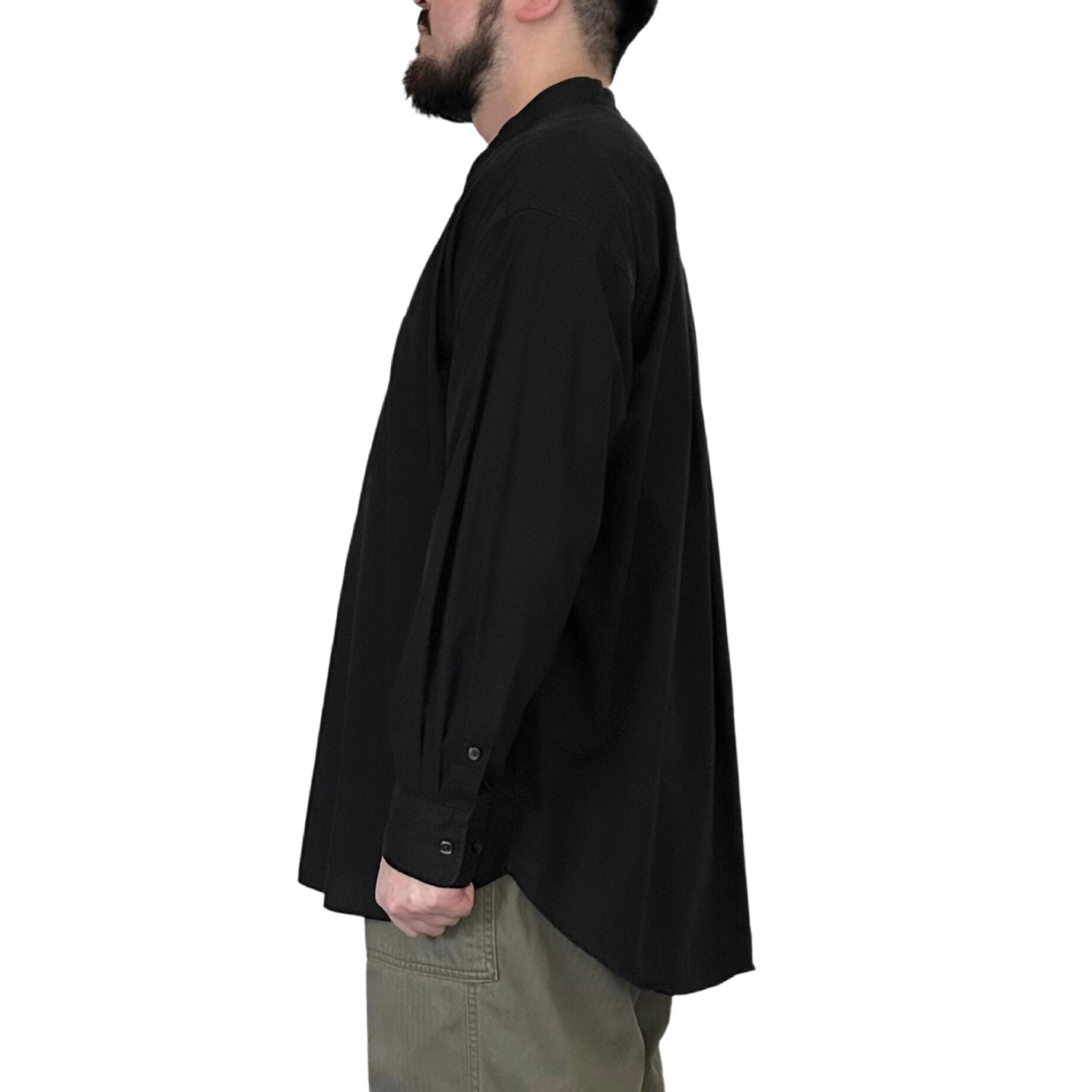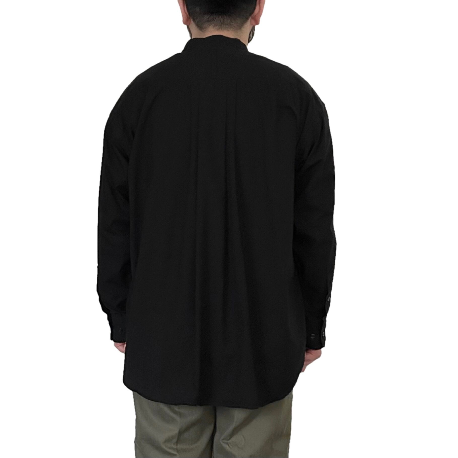 "SHIRT FIRST HAND"(mens) cotton band collar l/s black shirt