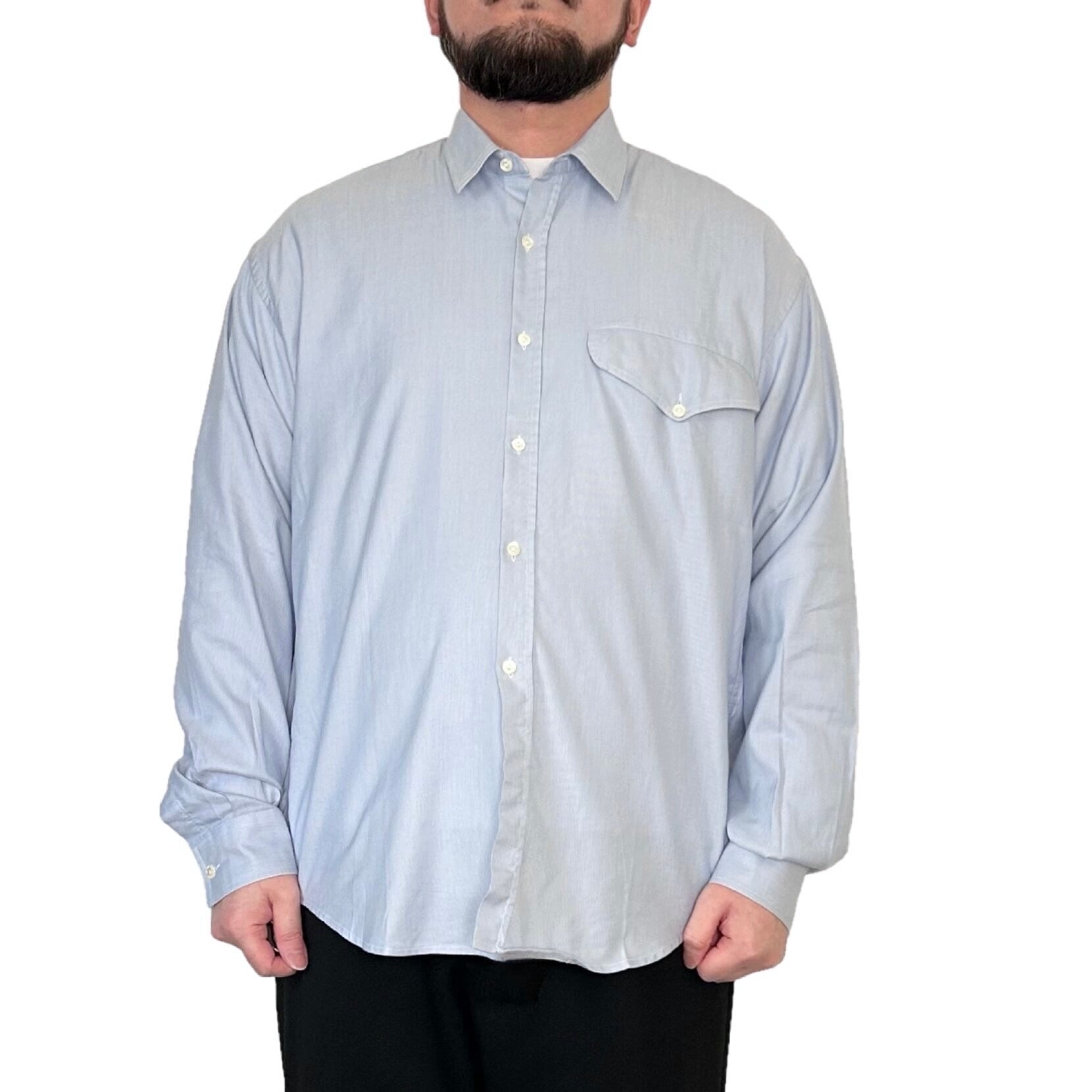 "brand unknown"(mens) cotton design l/s light blue shirt
