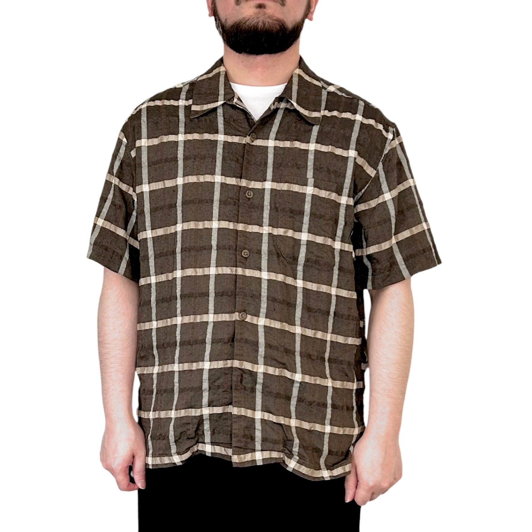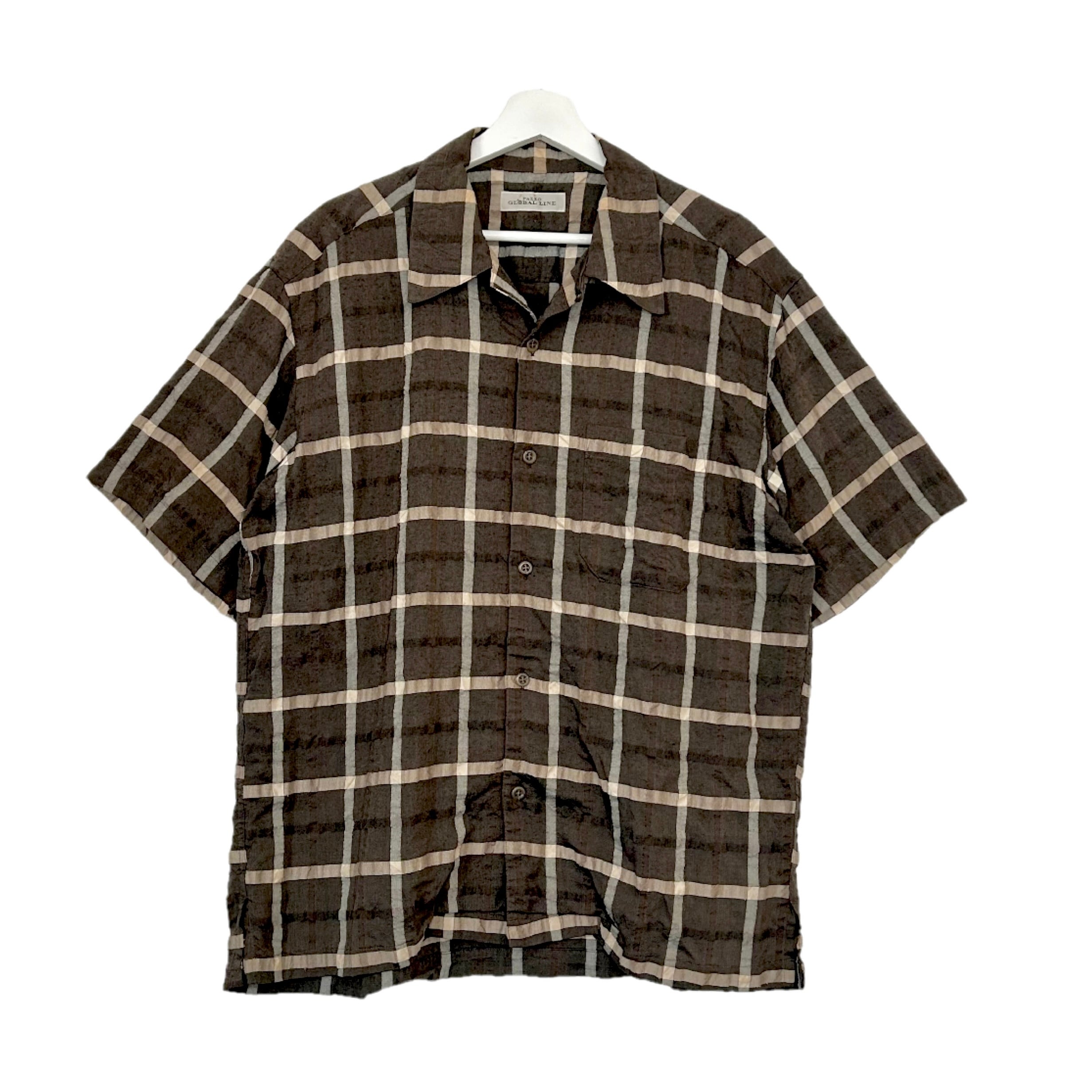 "PAZZO"(mens) rayon/polyester open collar s/s check shirt