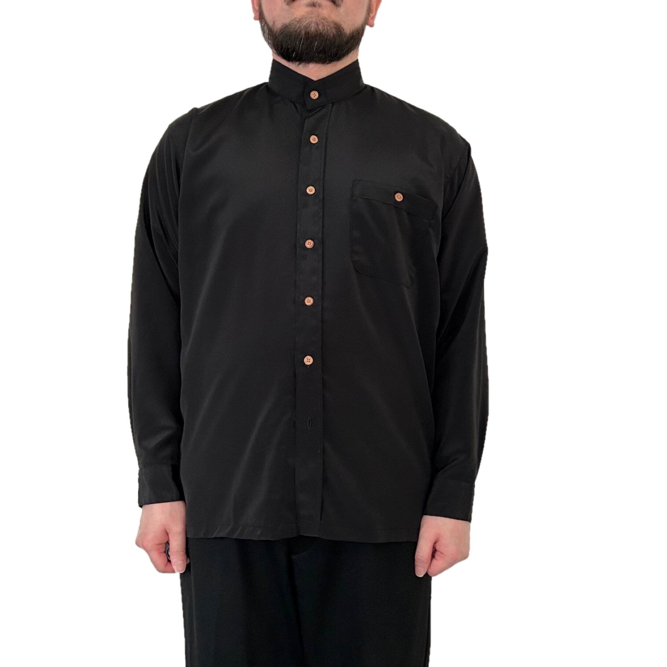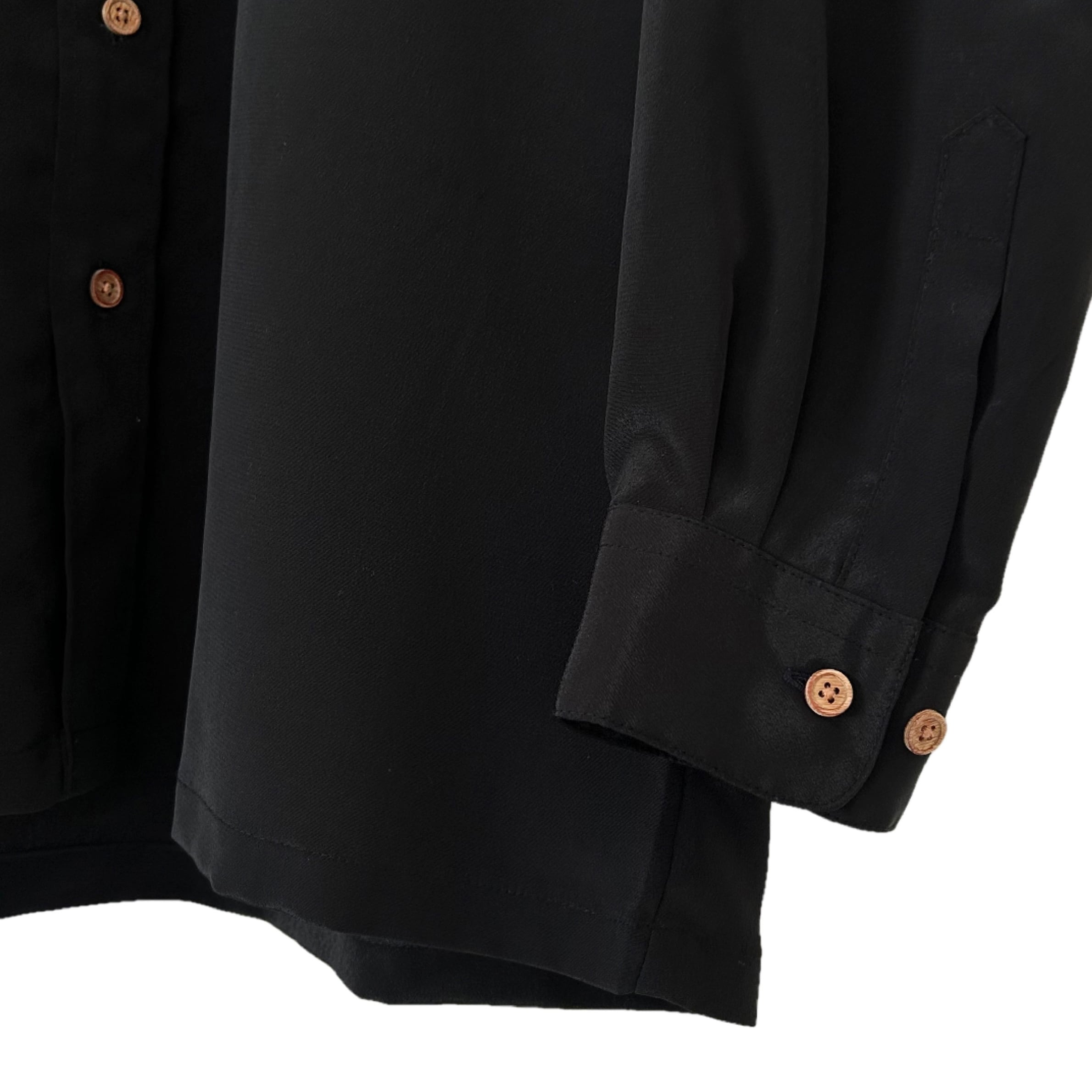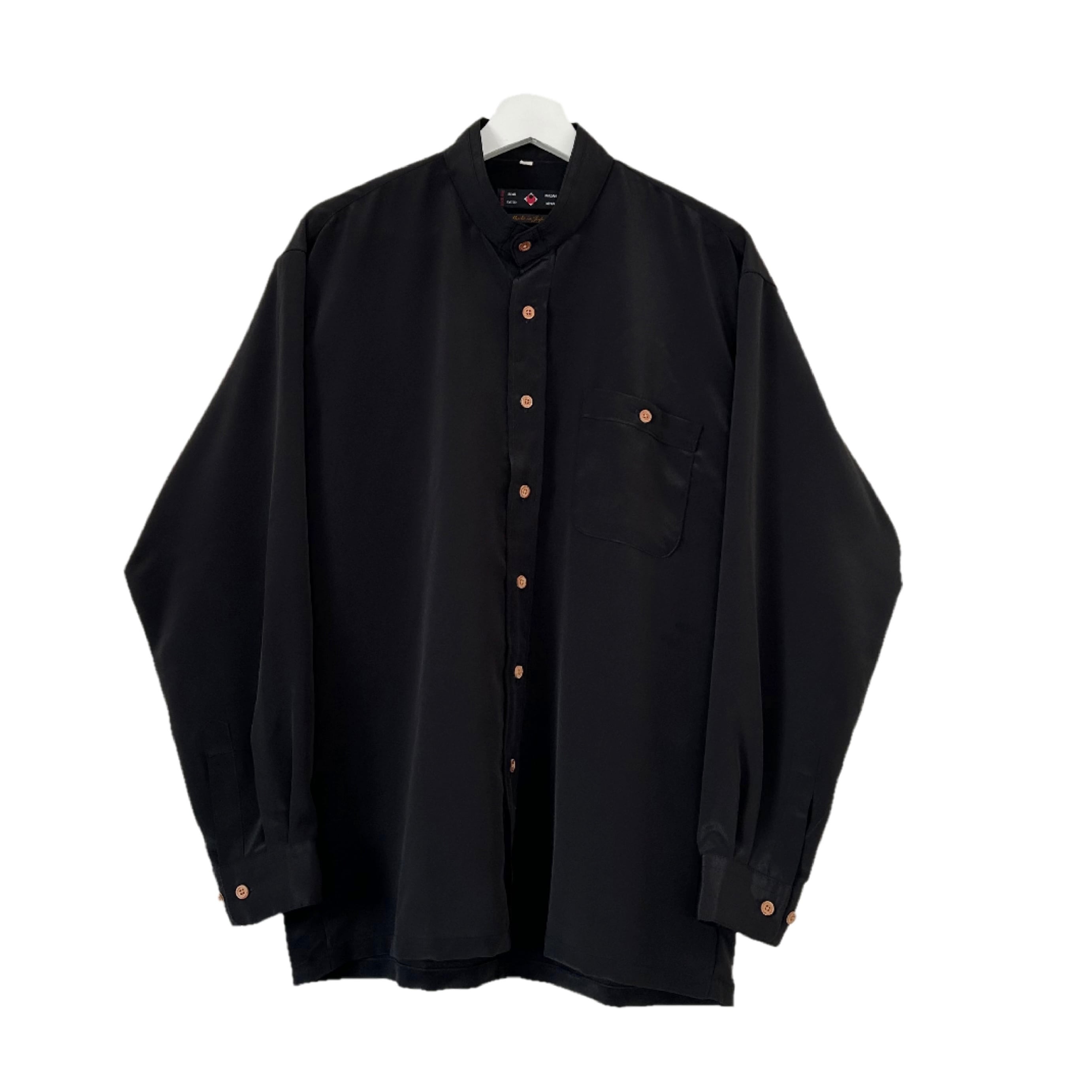 "ITOMI UKADAN"(mens) polyester band collar l/s black shirt